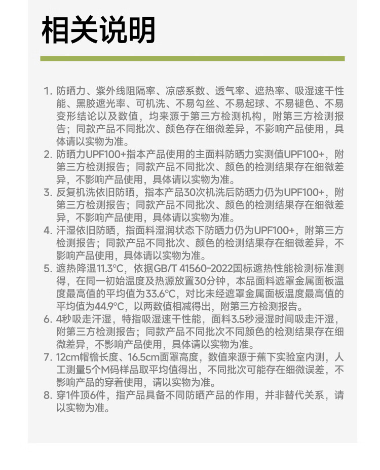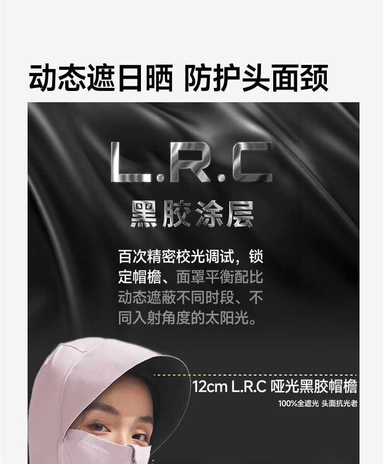 140%国标凉感系数、久洗久晒、依旧凉快 UPF100+、云朵原纱防晒、阻隔>99.5%紫外线 全遮光黑胶帽檐、头面颈一体防晒