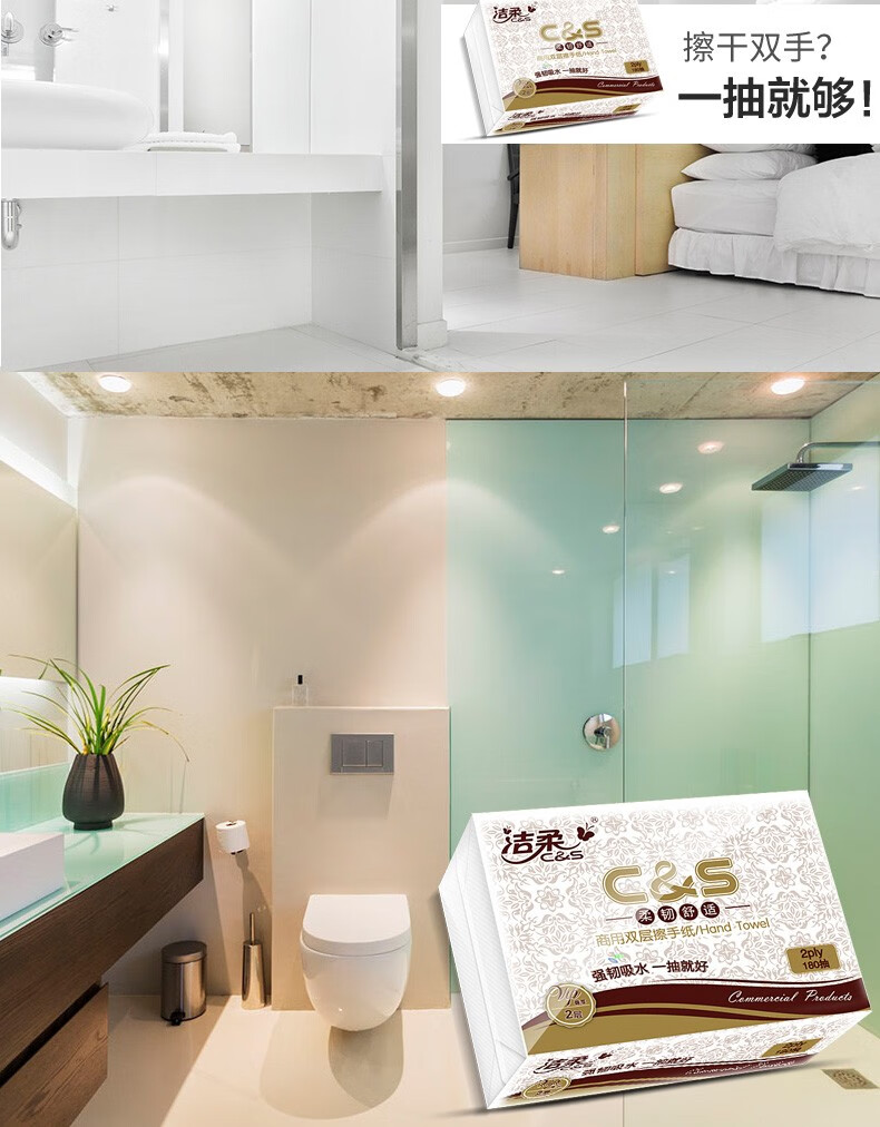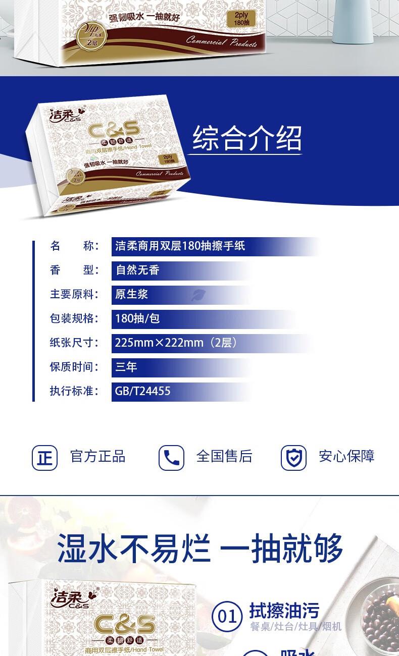 JC013-20A洁柔牌擦手纸2层180抽/包 20包整箱 225*222mm*2层180抽