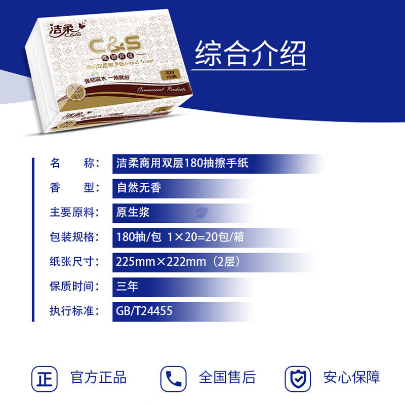 JC013-20A洁柔牌擦手纸2层180抽/包20包整箱