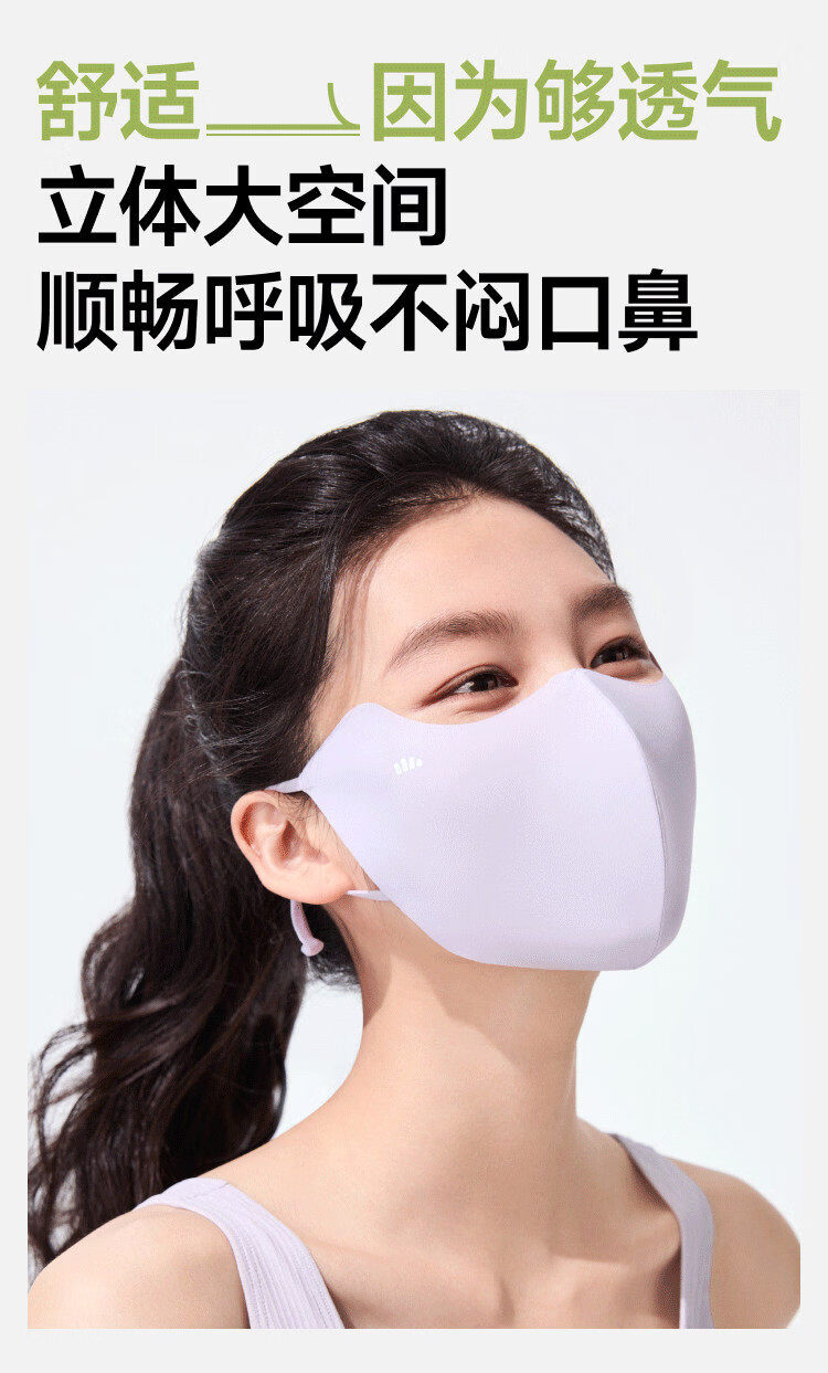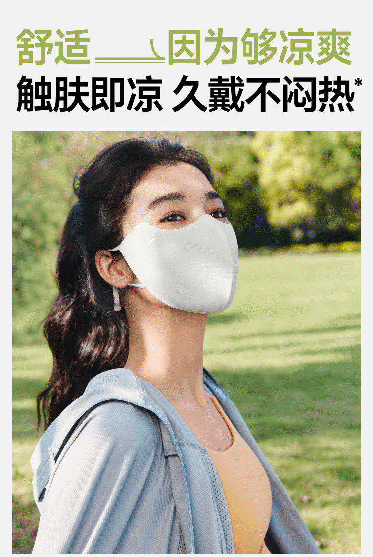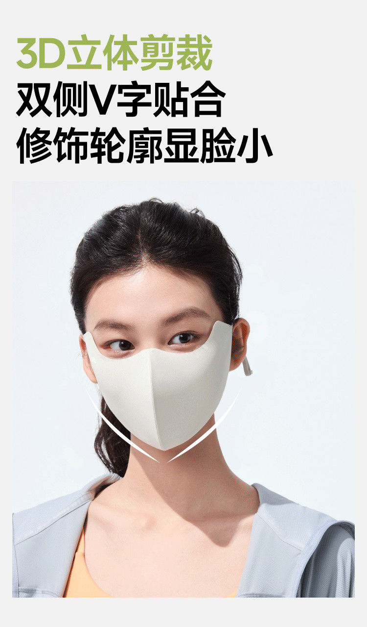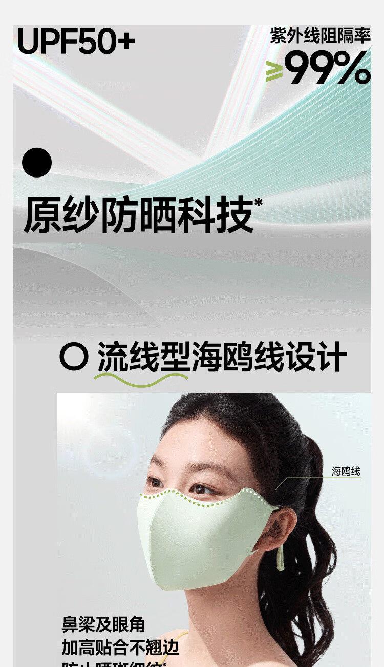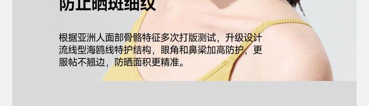 高倍防晒护眼角、热感速降、戴全天更凉快立体支撑不易蹭口红、大口呼吸不糊嘴高倍原纱防晒加高护眼角、防止晒斑细纹