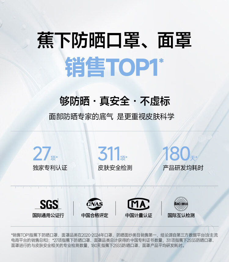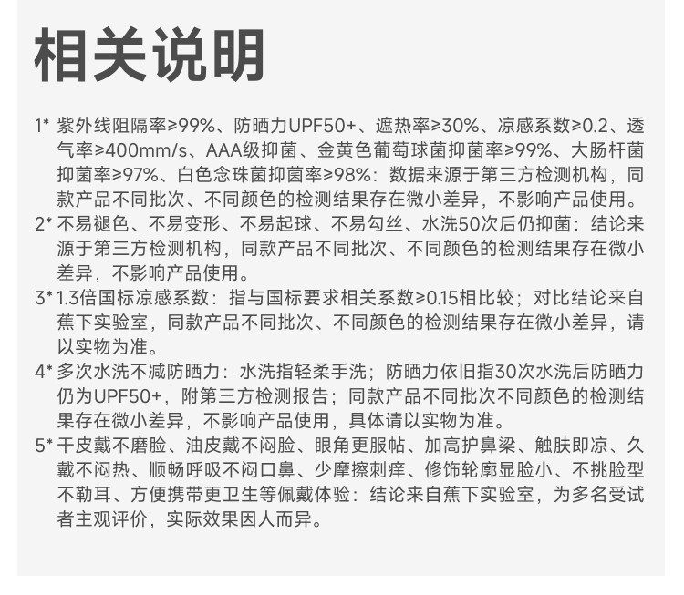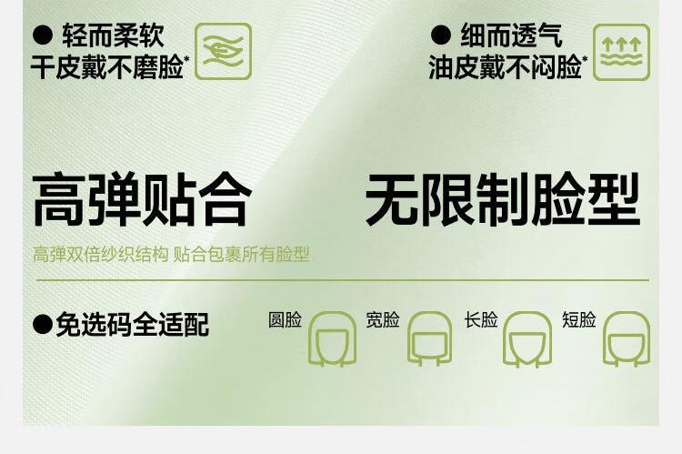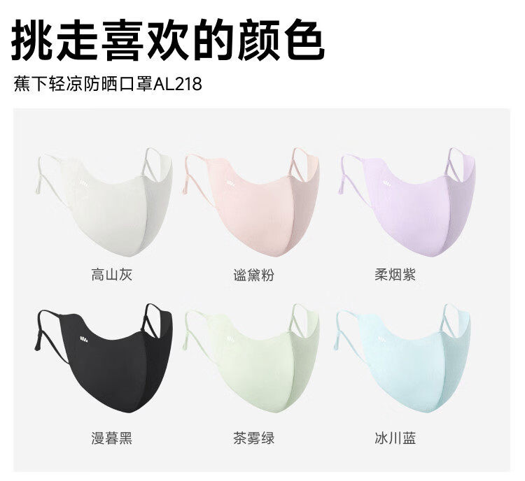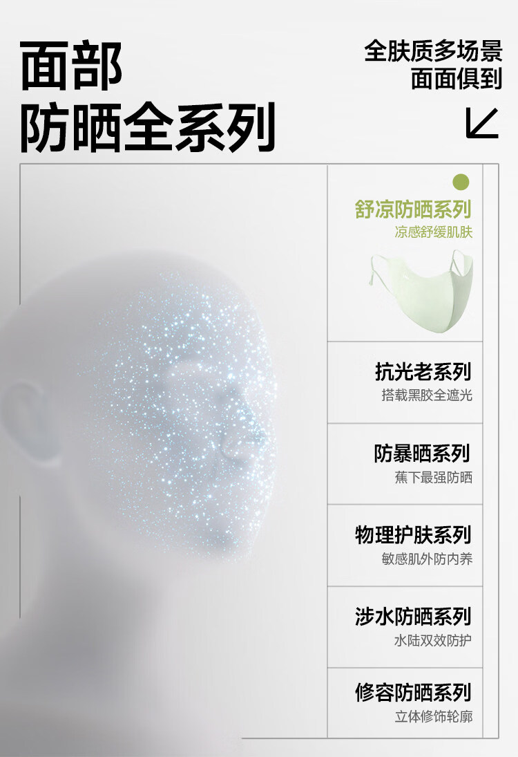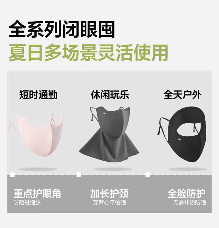 高倍防晒护眼角、热感速降、戴全天更凉快立体支撑不易蹭口红、大口呼吸不糊嘴高倍原纱防晒加高护眼角、防止晒斑细纹