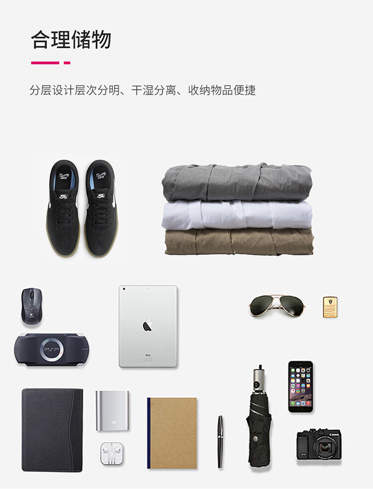 产品材质:织物料 产品颜色:黑色 外观尺寸:400*230*210mm 产品容量:15L 产品条码:6958698325643 装 箱数量:10pc