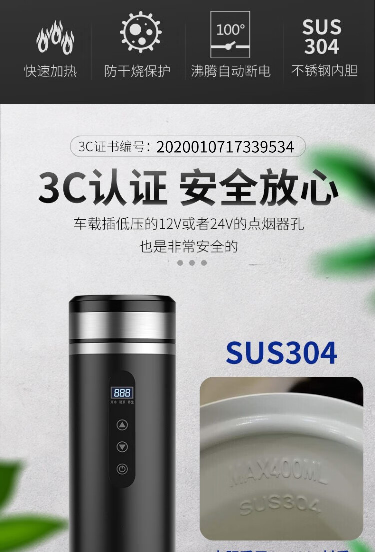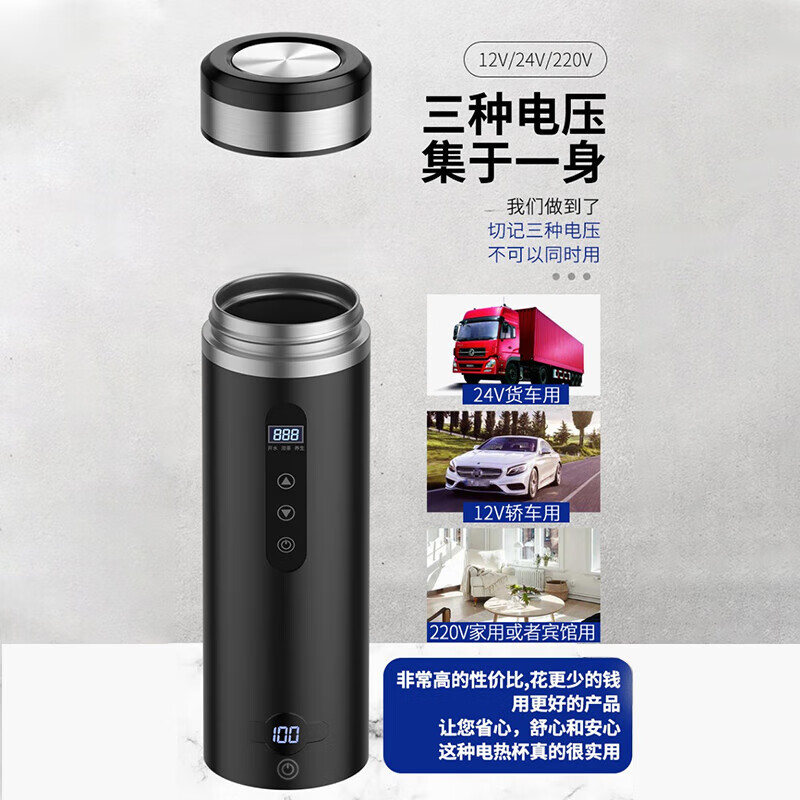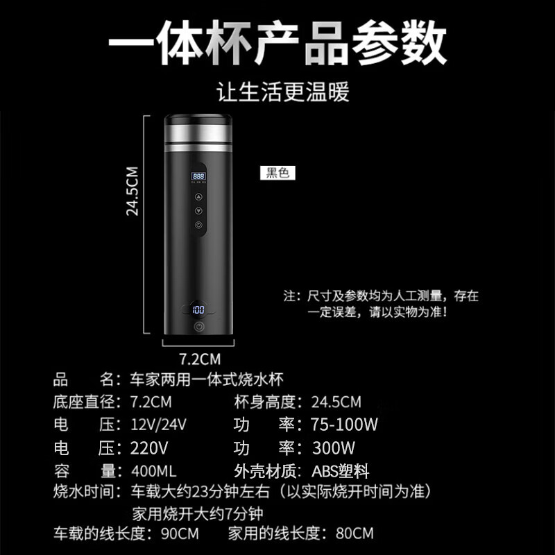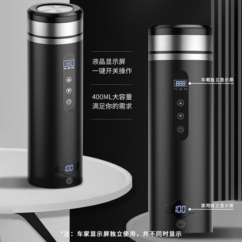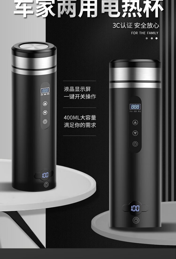 产品型号 400A/C 供电方式 12V-24V/220V 电压 12V-24V 温度 30℃-100℃ 功率 DC/0-100W AC/300W 功能 加热保温 容量 400ml 材质 不锈钢304 产品颜色 黑色、白色 产品尺寸 225*190*70mm 产品净重 0.28kg