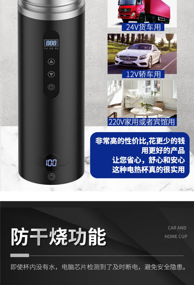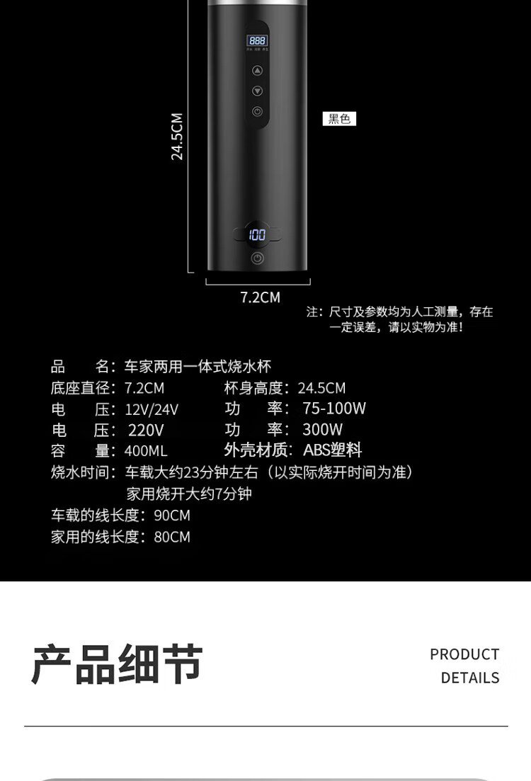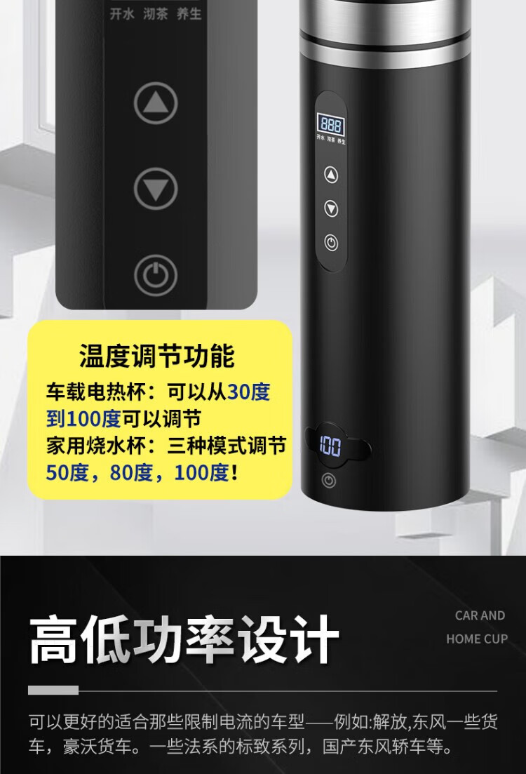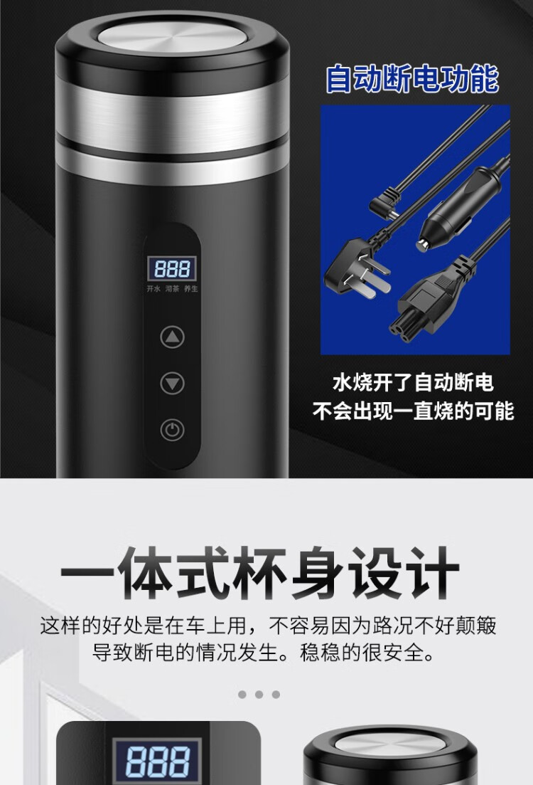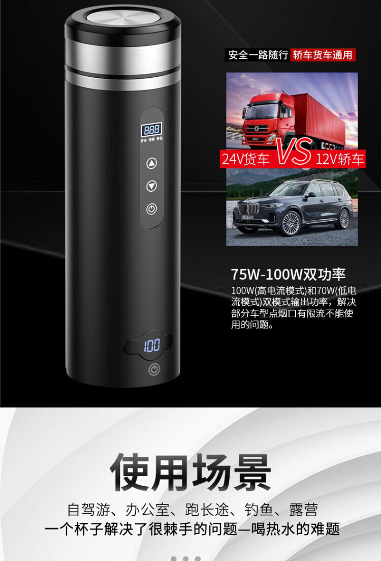 产品型号 400A/C 供电方式 12V-24V/220V 电压 12V-24V 温度 30℃-100℃ 功率 DC/0-100W AC/300W 功能 加热保温 容量 400ml 材质 不锈钢304 产品颜色 黑色、白色 产品尺寸 225*190*70mm 产品净重 0.28kg