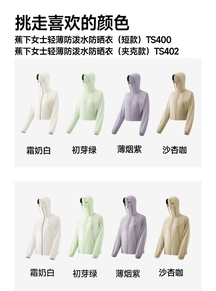 蕉下女士轻薄防泼水防晒衣(夹克款)TS402