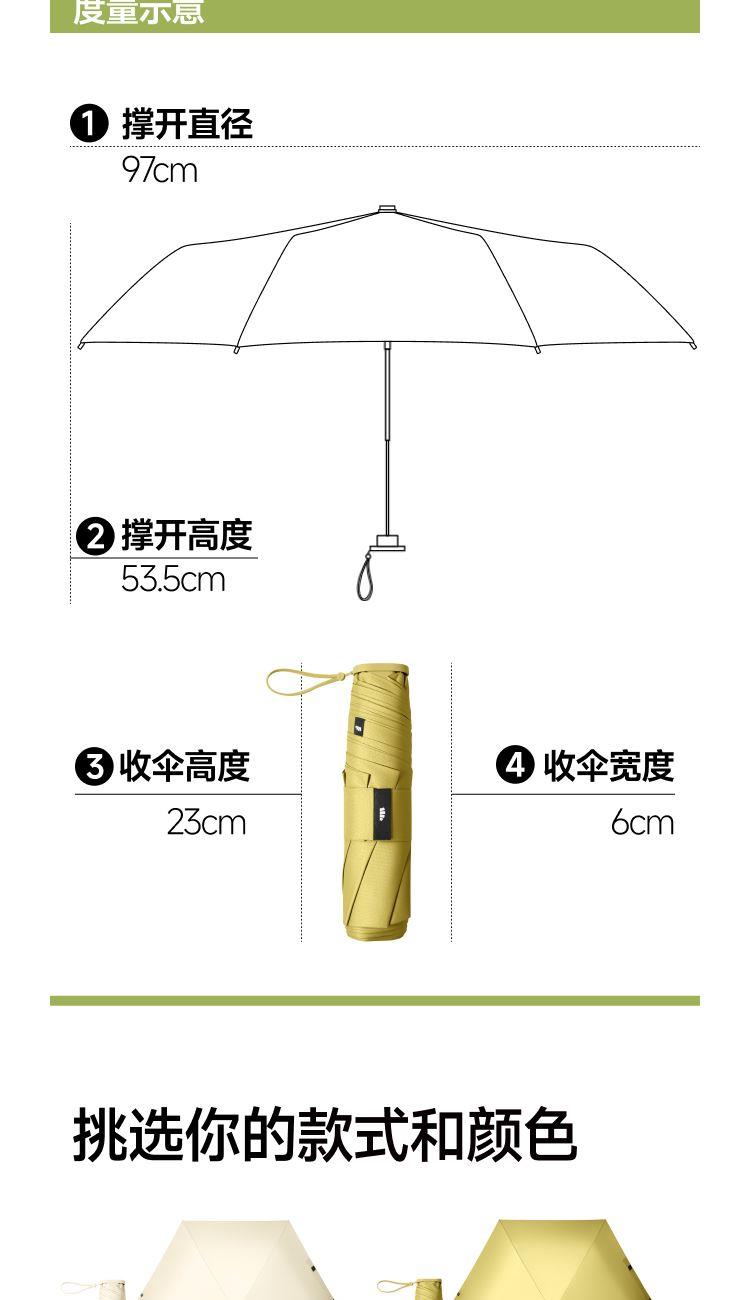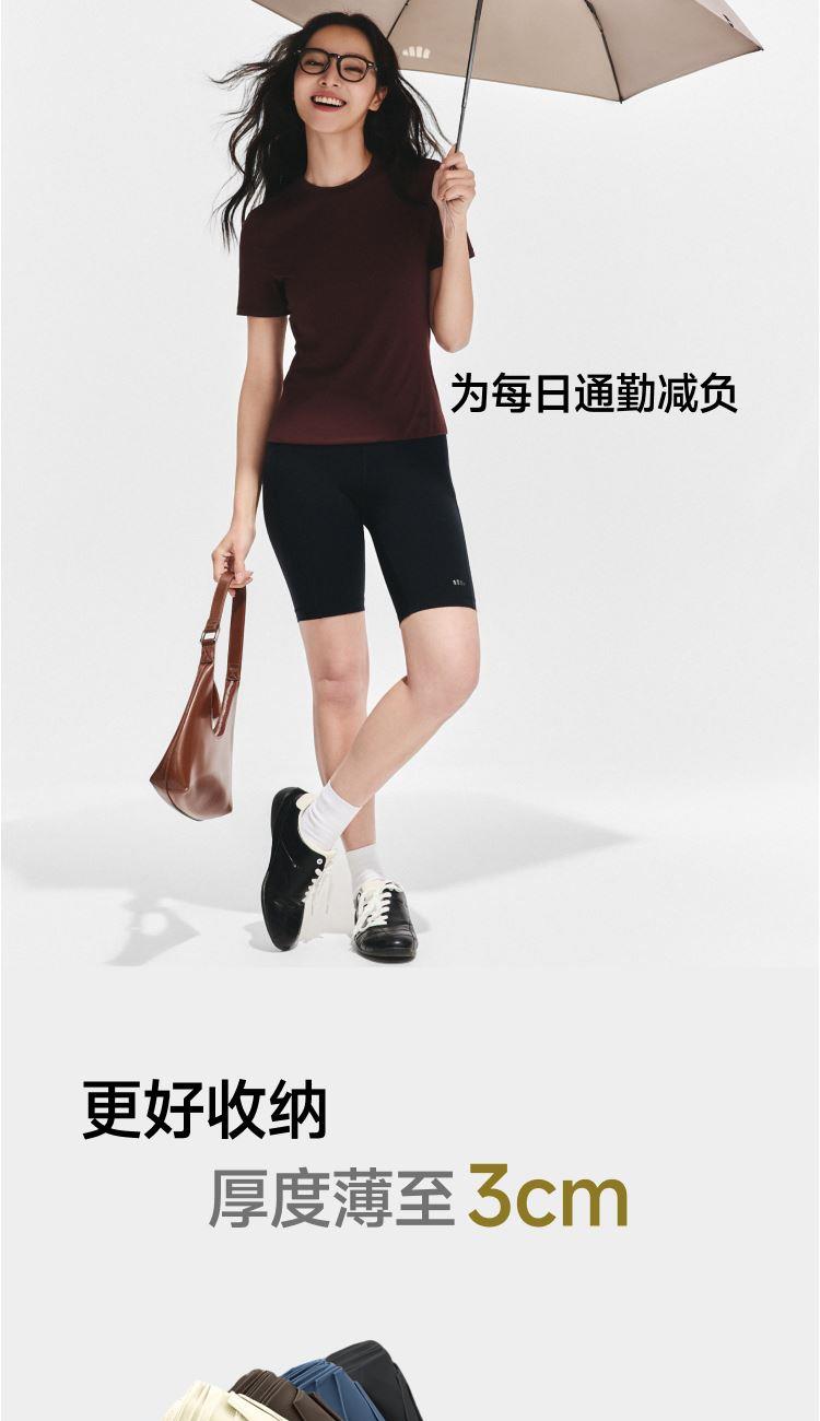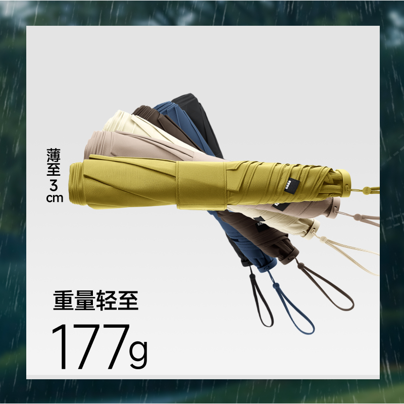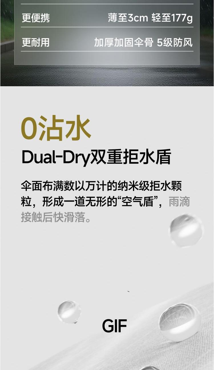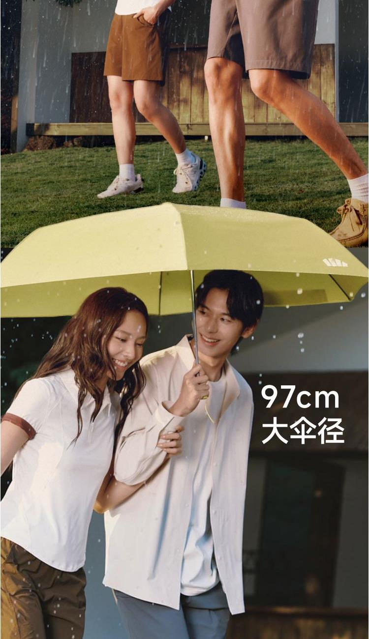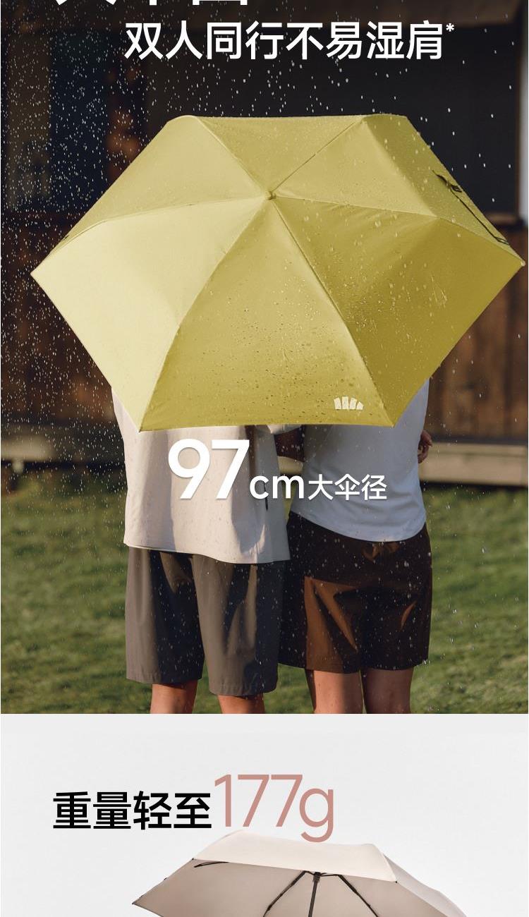 0沾水免晾即收、97cm大伞径双人同行不湿肩轻至177g、更好收纳厚度薄至3cm色彩持久雨淋不掉色