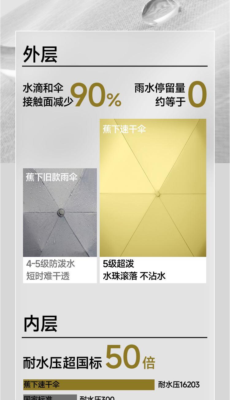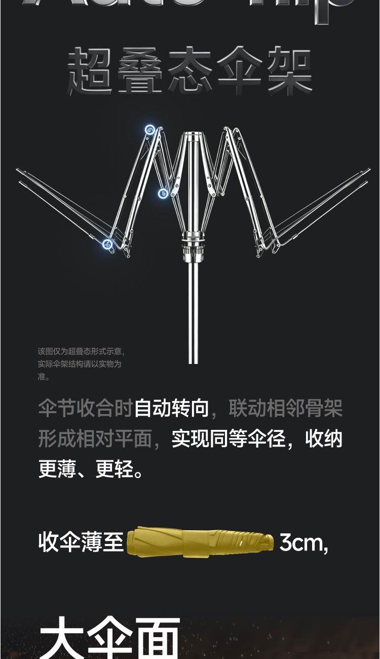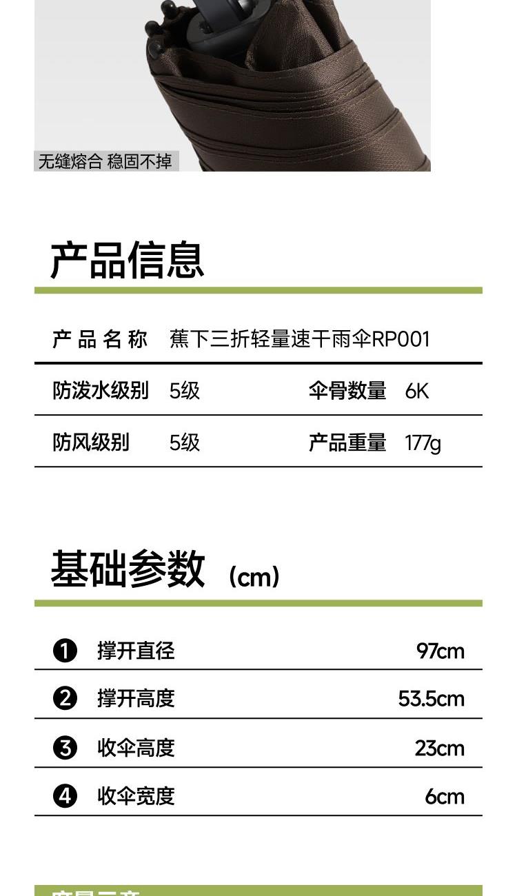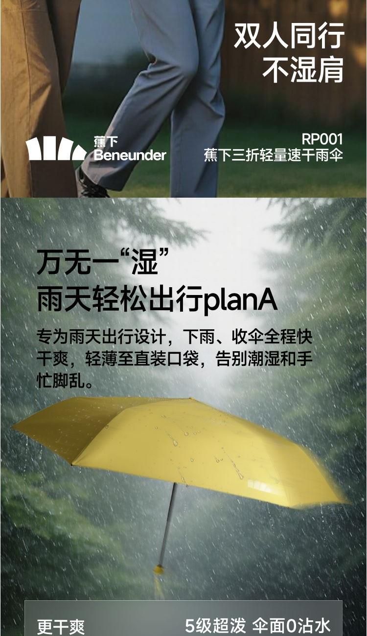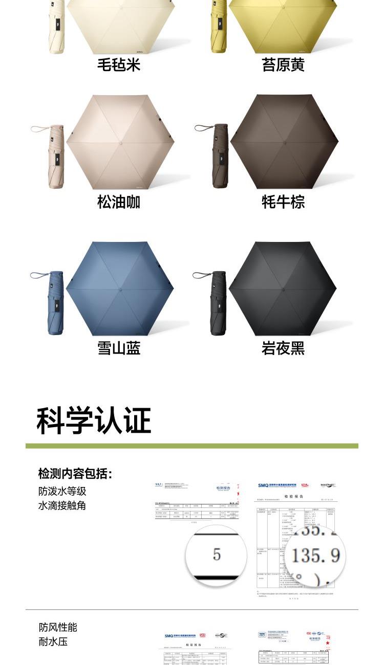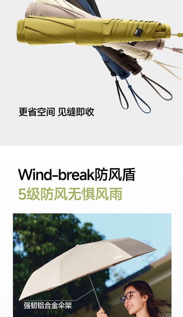0沾水免晾即收、97cm大伞径双人同行不湿肩轻至177g、更好收纳厚度薄至3cm色彩持久雨淋不掉色