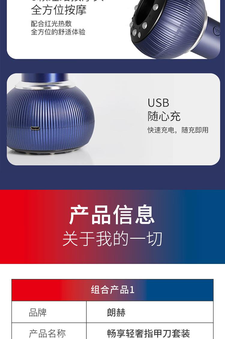 平口指甲刀 斜口指甲刀 修眉剪 死皮推 耳勺 甲挑 鼻毛刀 指甲锉 眉夹 收纳包 摩飞刮痧仪 MR3158 续航:≈1H(发热低档) 默认工作时间:30min(自动关闭) 充电时间:3小时±0.5小时 充电电压:5V 额定功率:5w 充电接口:USB 电池容量:1200毫安 配件:主机*1、艾草精油*5、滤棉*4、充电线*1、说明书*1