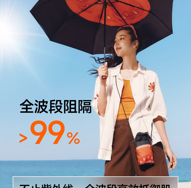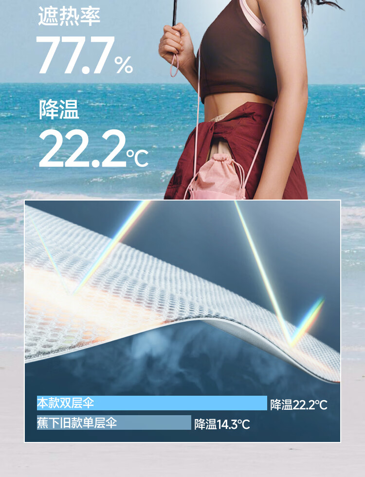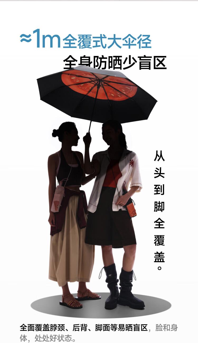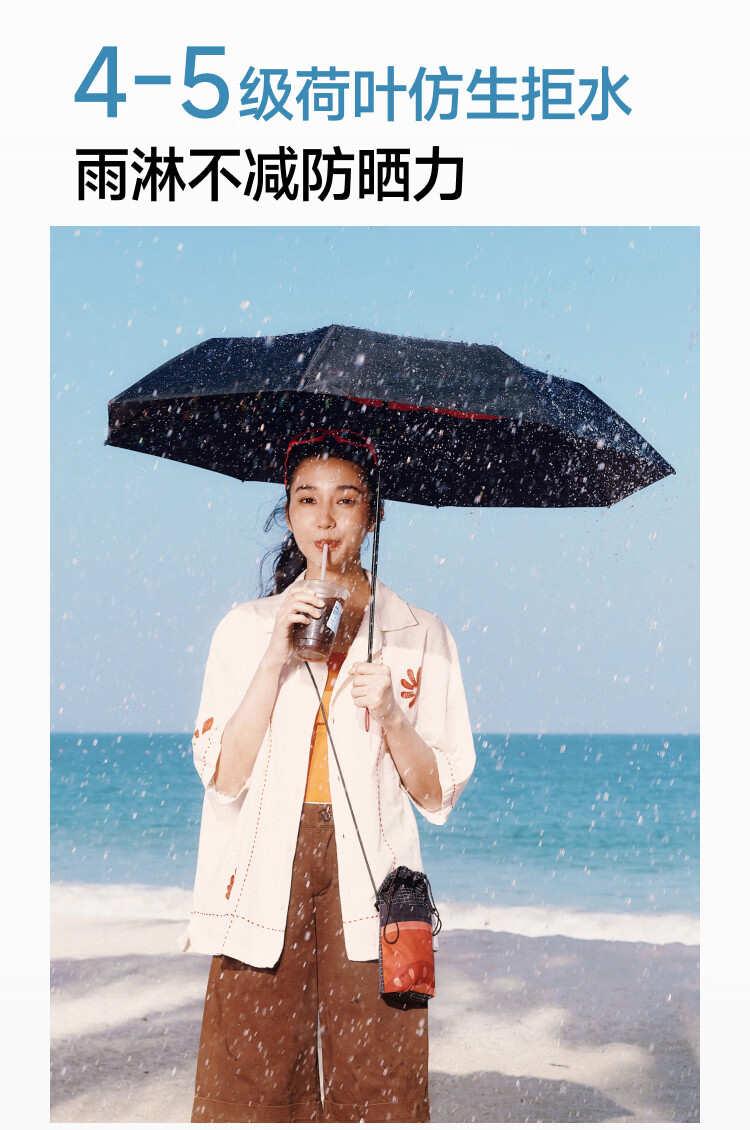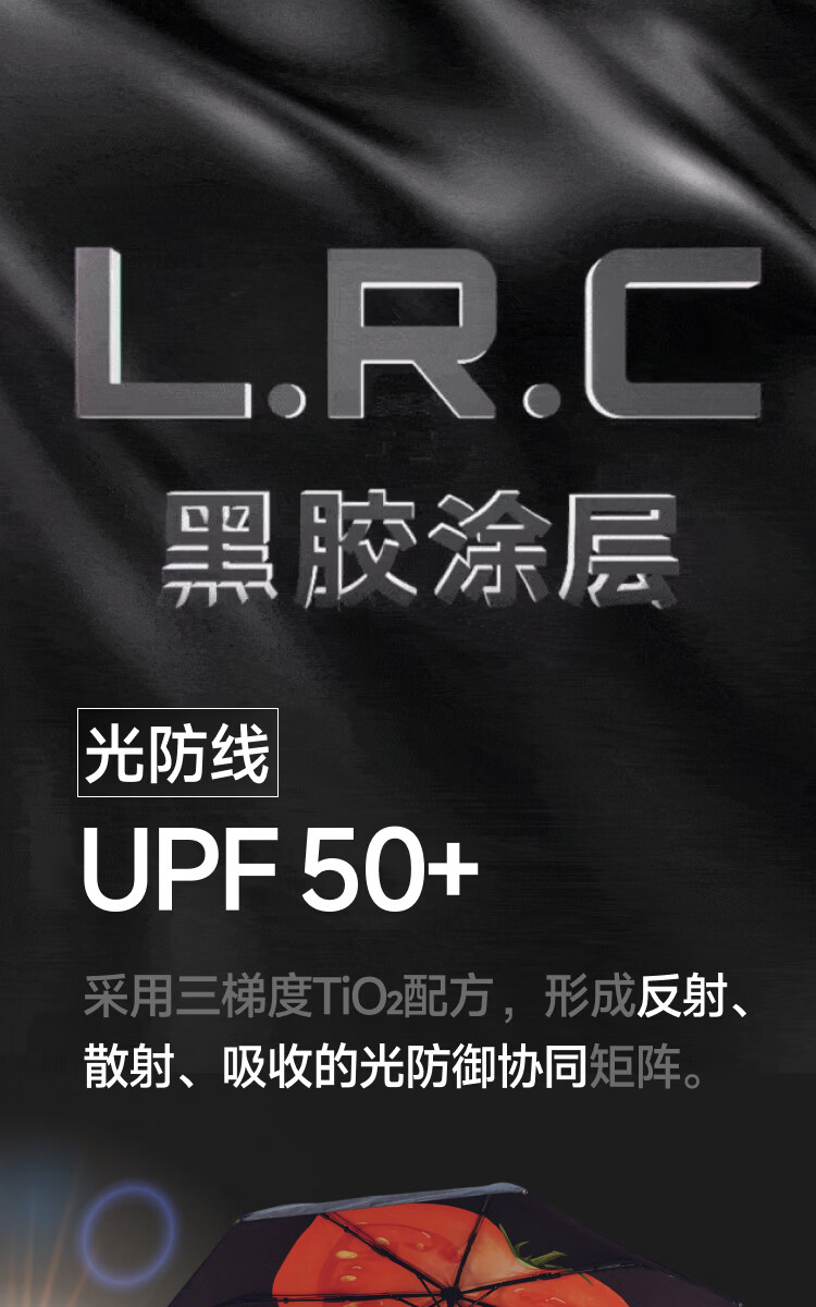 旗舰L.R.C黑胶、UPF50+防晒遮热紫外线阻隔率≥99.99%、全身防晒到脚面热晒双抗、小巧利落、专 利硬壳胶囊、可拎可背