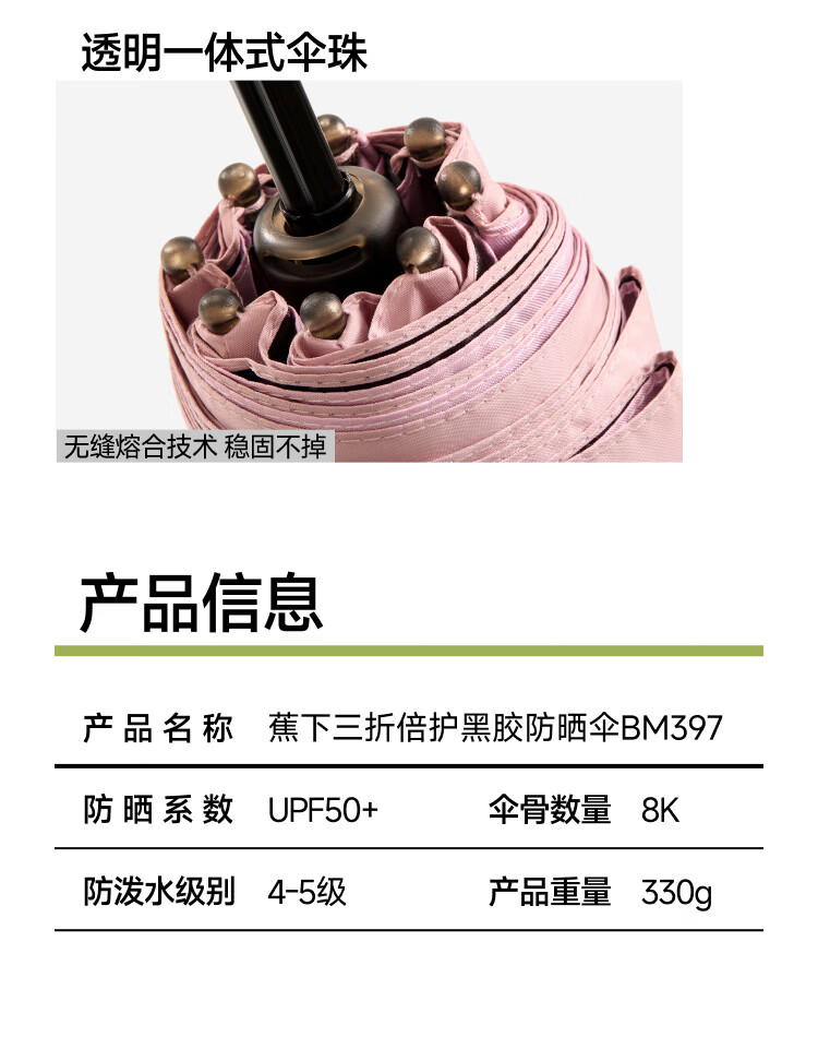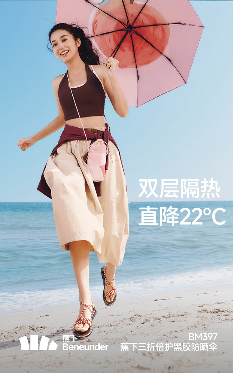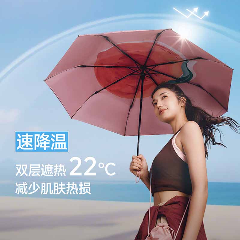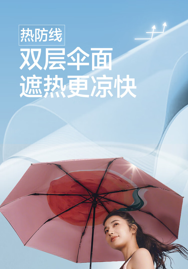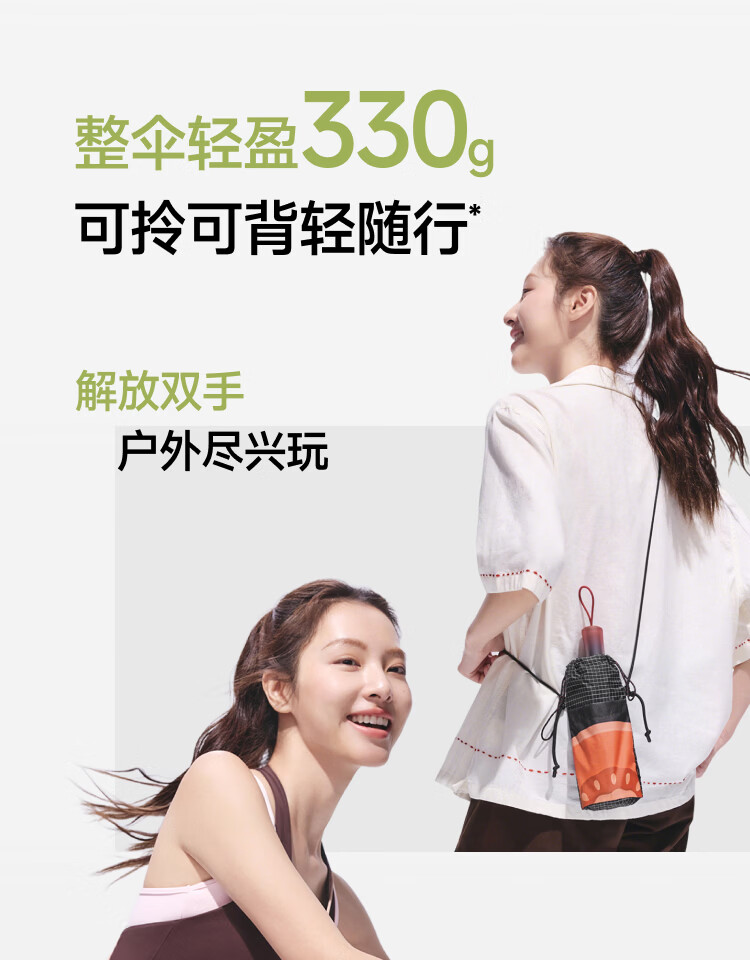 旗舰L.R.C黑胶、UPF50+防晒遮热紫外线阻隔率≥99.99%、全身防晒到脚面热晒双抗、小巧利落、专 利硬壳胶囊、可拎可背