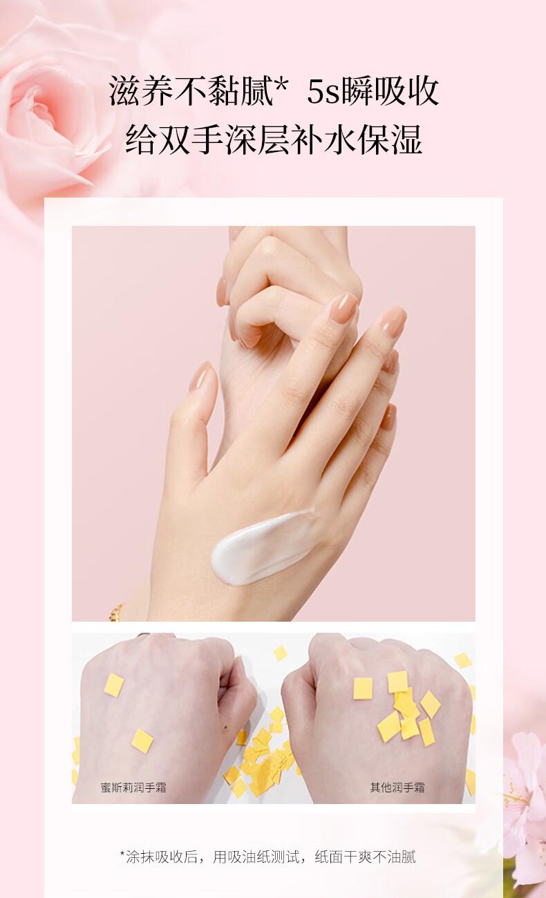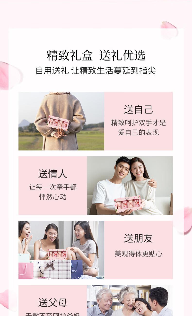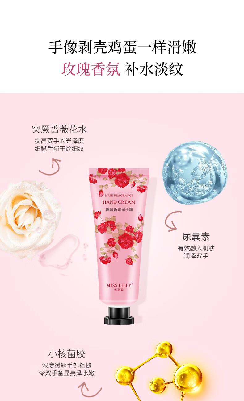 1.MISS LILLY蜜斯莉玫瑰香氛润手霜50g*2 2.MISS LILLY蜜斯莉樱花香氛润手霜50g*2 3.礼盒*1