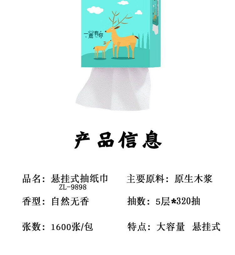 纸禄悬挂式抽纸----型号:纸禄ZL-9898