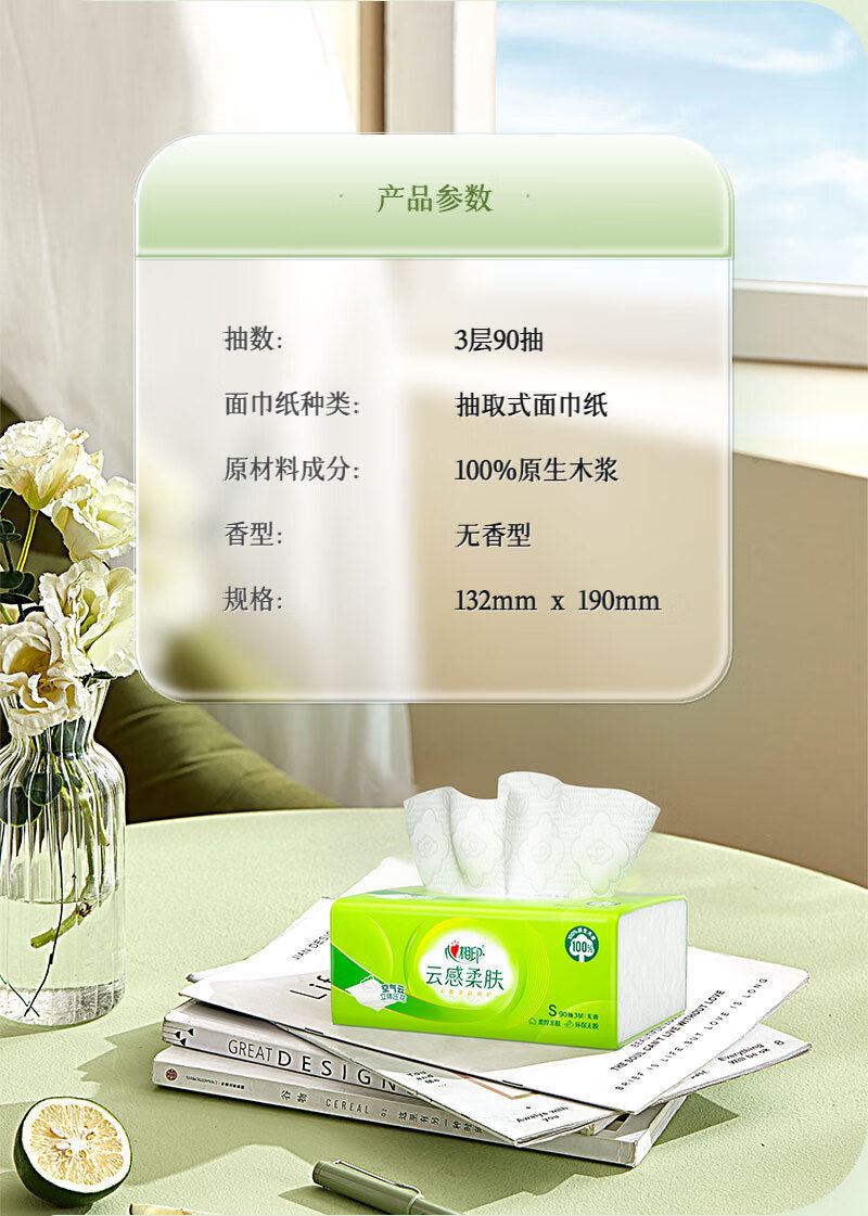 DT17090心相印云感90抽三层塑装面巾纸60包/箱