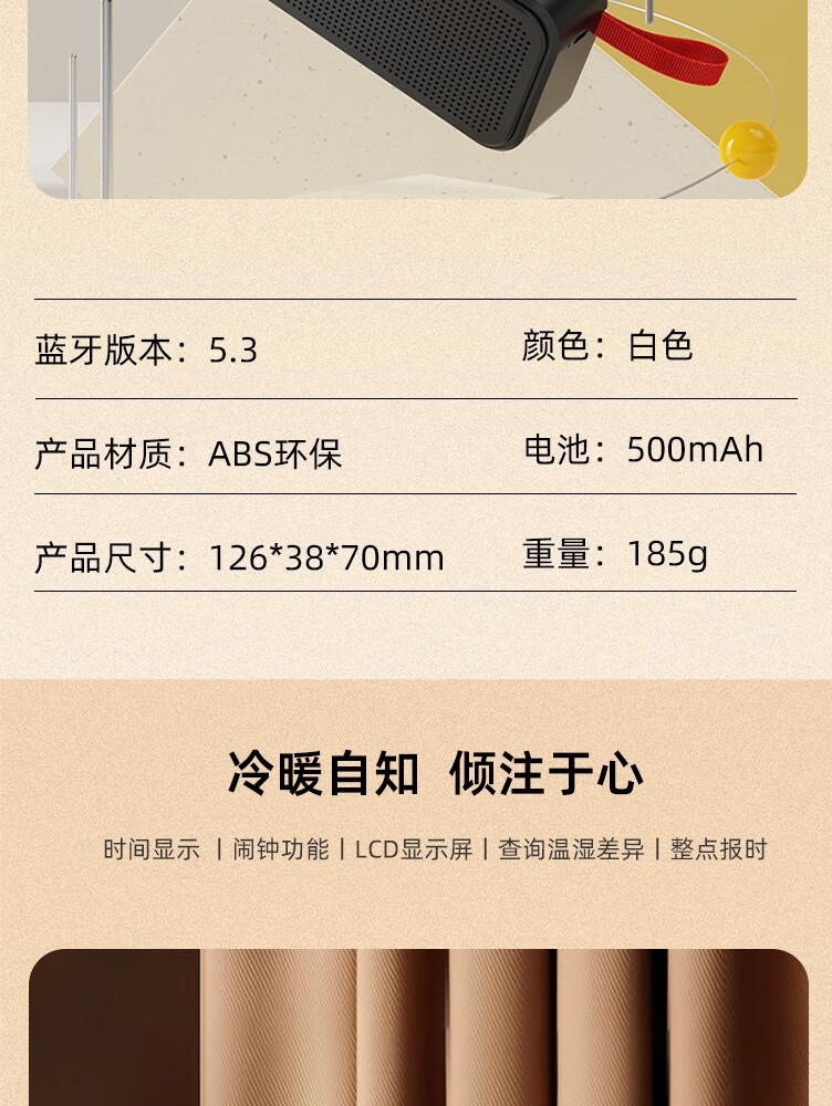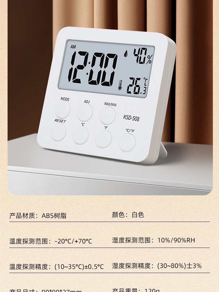 产品尺寸:141*68*16mm时钟温湿度计:精 准机芯,温湿两用,舒适提示,闹钟