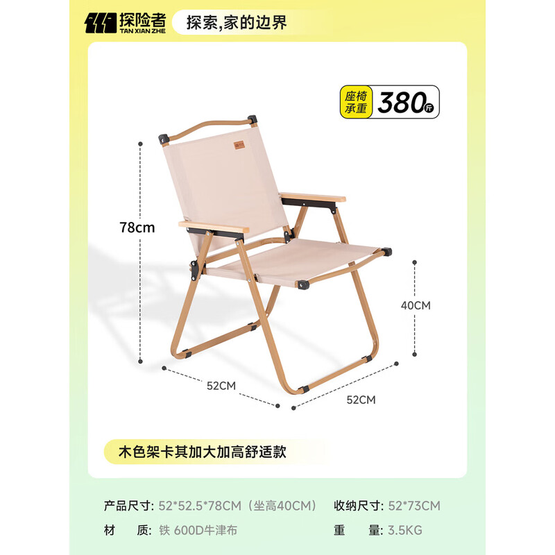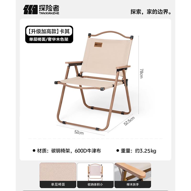 型号:TXZ-0546 尺寸:52*52.5*78cm 材质:碳钢、牛津布 颜色:卡其 净重:2.75kg 毛重:3.25kg 包装尺寸:55*8*76.5cm 69码:6959345706181