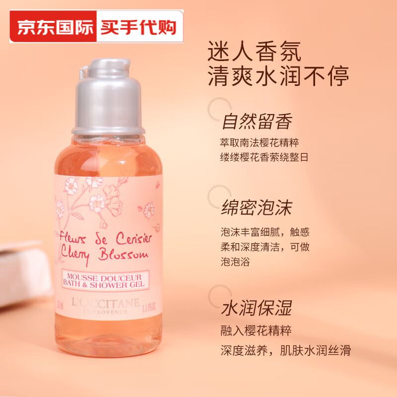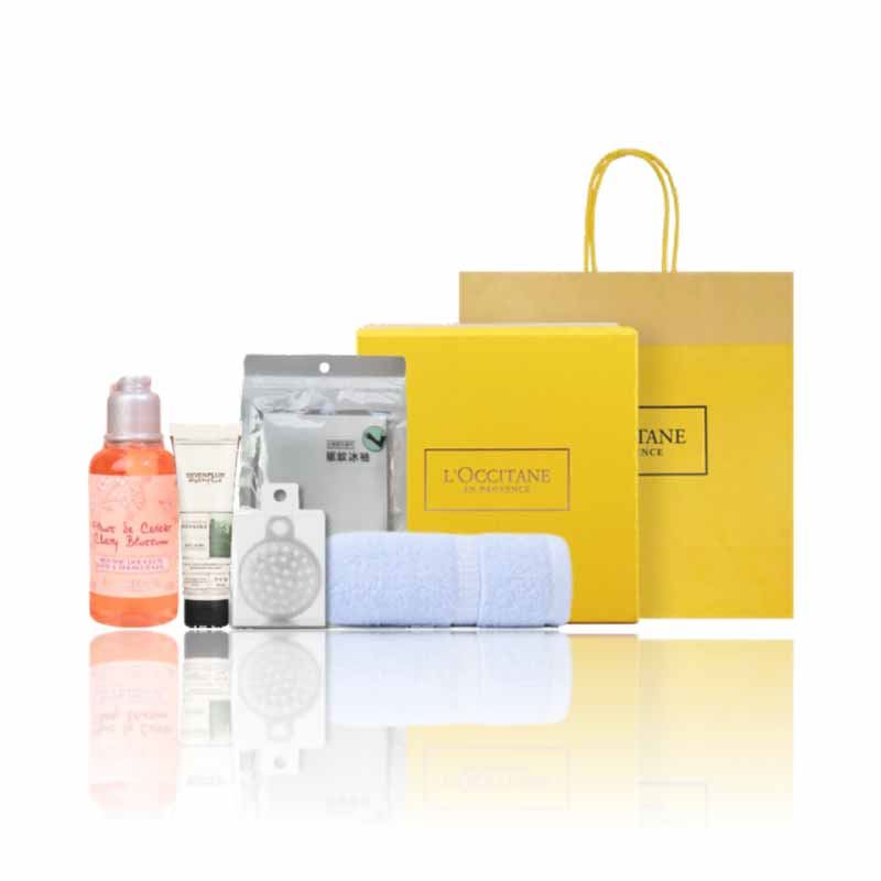 【套装配置】(香型随机/新老包装随机) 1.欧舒丹甜蜜樱花香氛沐浴乳35ml*1 2.SEVEN PLUS绿茶香氛润肤露30ml*1 3.施卡西防晒透气驱蚊冰袖*1 4.日式清洁按摩气囊梳*1 5.洁丽雅臻品长绒棉毛巾70g*1 6.欧舒丹精美礼盒礼袋*1