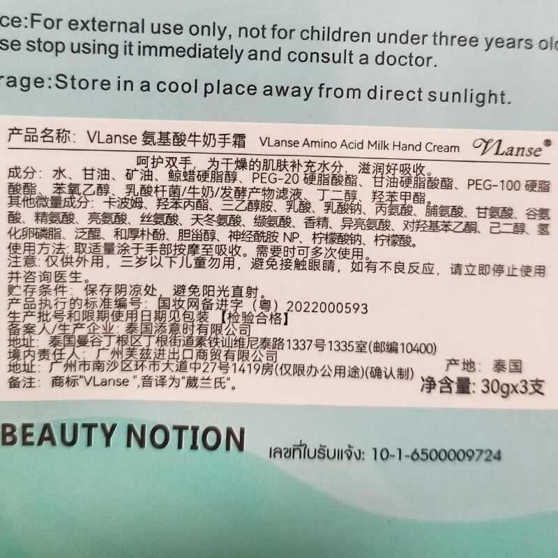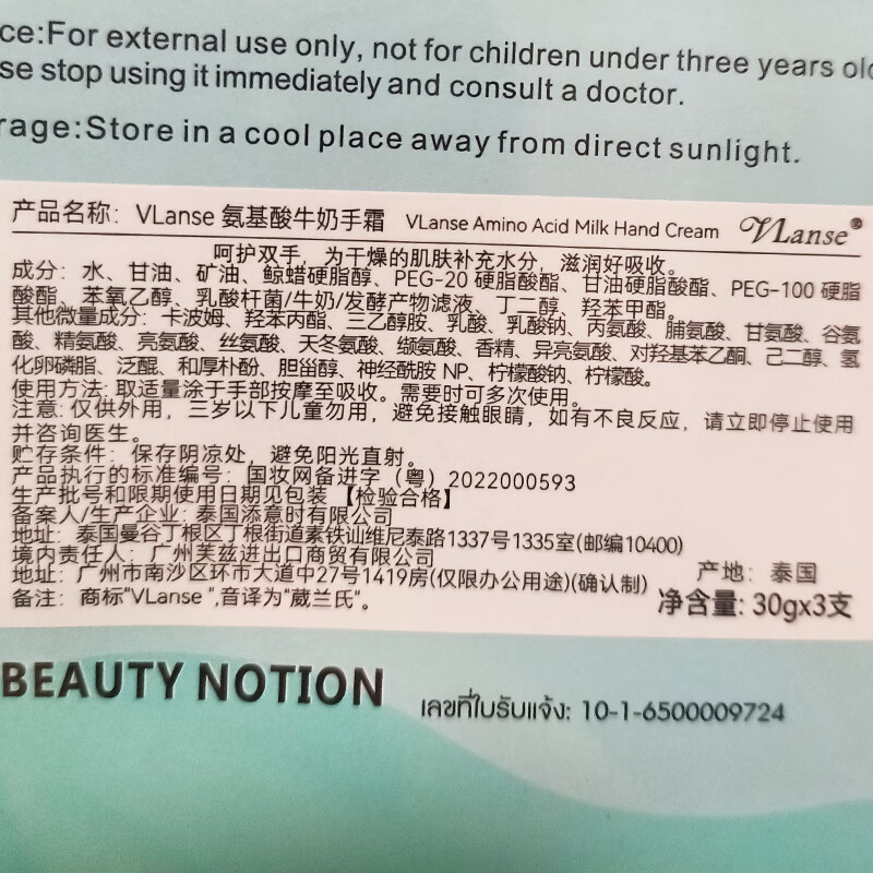 葳兰氏氨基酸牛奶手霜30g*3