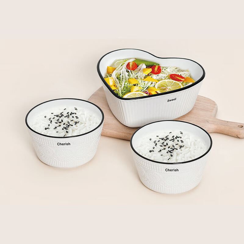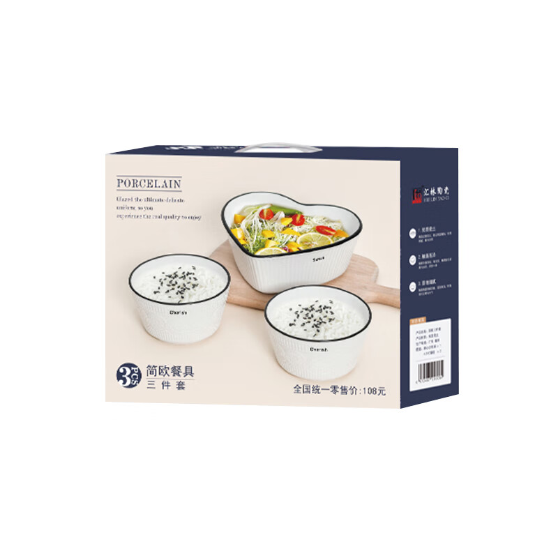 产品规格:桃心沙拉碗 * 1 4.5寸饭碗 * 2 彩盒尺寸:27.3x23.1x7.4