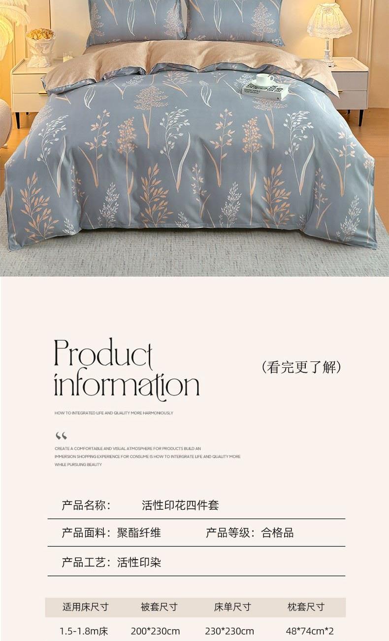 货 号:YLT2203 规 格:被套 200*230cm 床单 230*230cm 枕套 48*74cm*2 花 色:闲趣漫舞 面 料:聚酯纤维