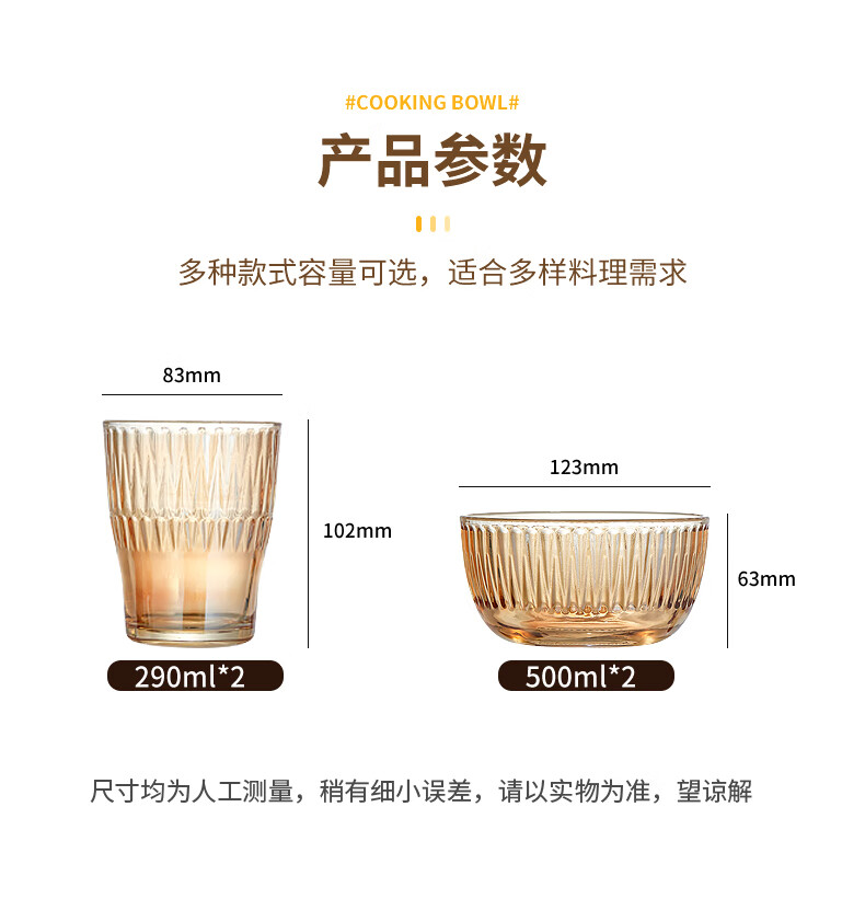 装 箱 规格:16套 /箱材 质:高白料钠钙玻璃产品参数:水杯290ml*2、小碗500ml*2、 彩盒尺寸:268*97*242mm 外箱尺寸:55.2*40.8*50.2cm
