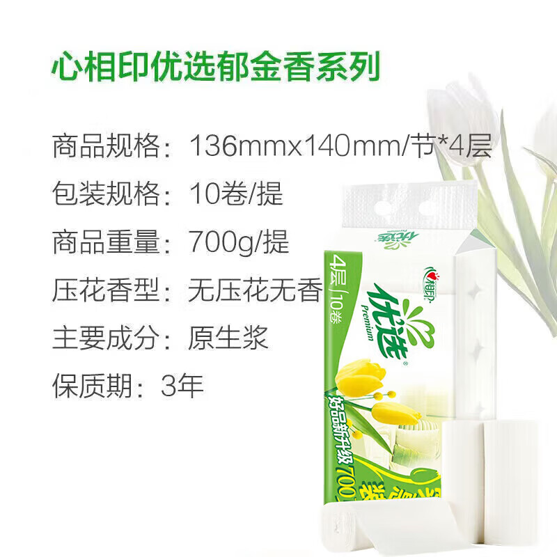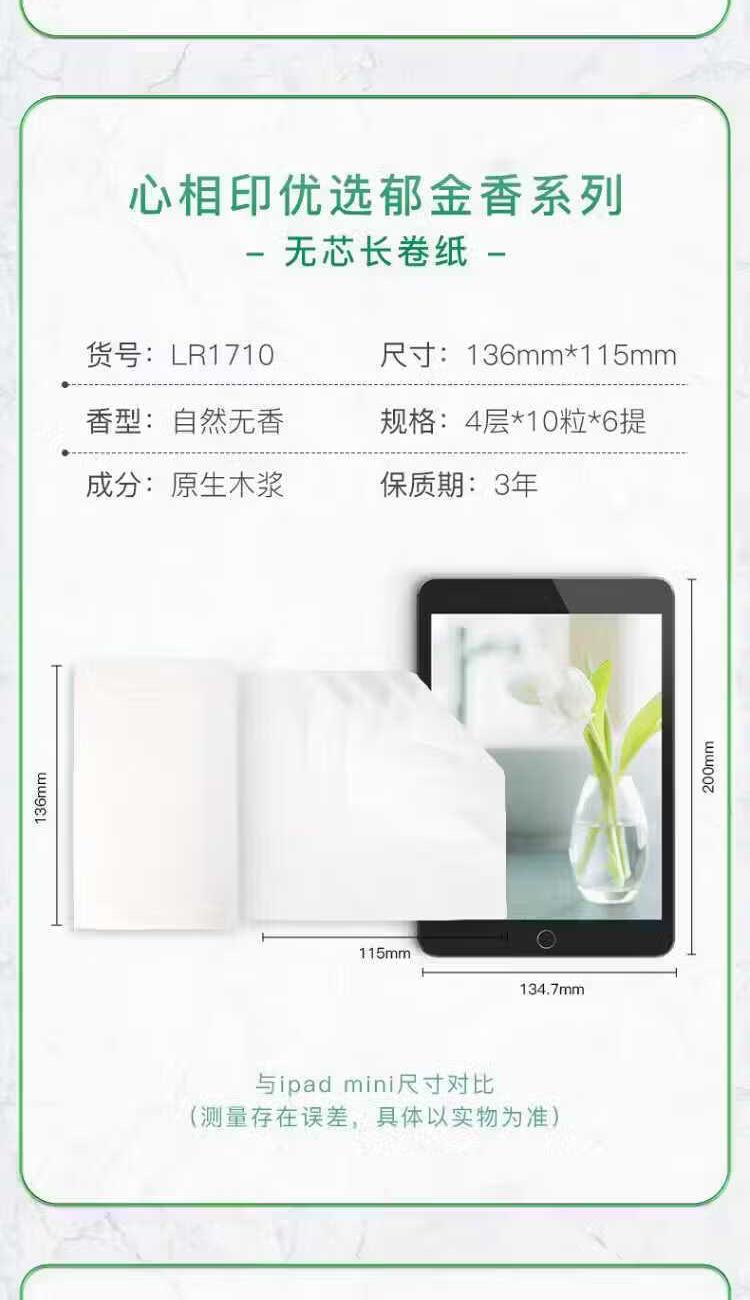 LR1710心相印优选系列卷纸无芯卷纸4层700g60卷/箱
