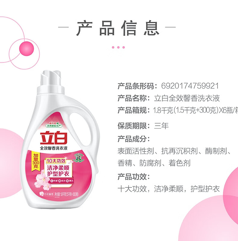 立白全效馨香洗衣液每瓶1.8kg 瓶装