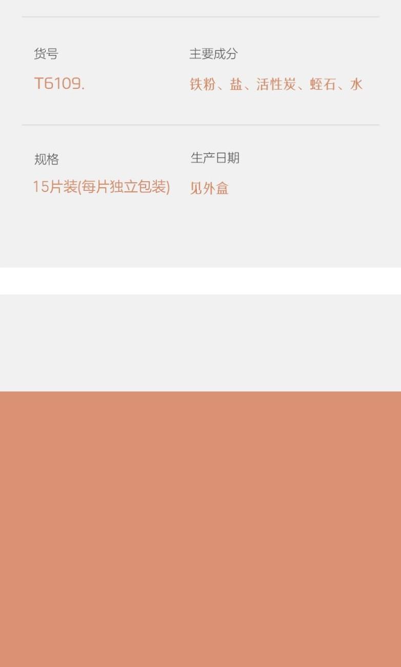 ①货号:T6109 ②尺寸:单片暖身贴12*9cm③功能:8h持续发热,小巧服帖,亲肤透气