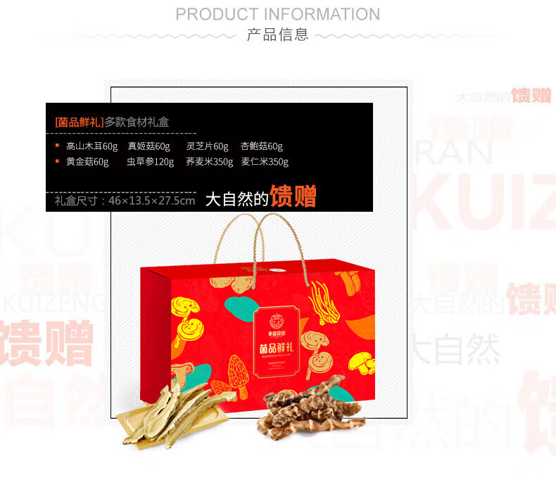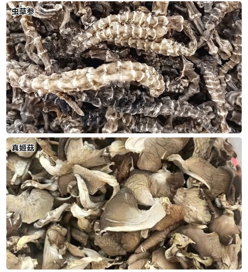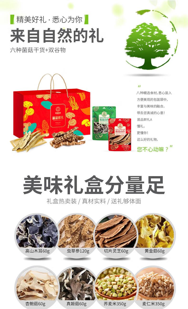 高山木耳60g 野生真姬菇60g精选灵芝片60g 野生杏鲍菇60g精选黄金菇60g 云南虫草参120g精选荞麦米350g 精选麦仁米350g