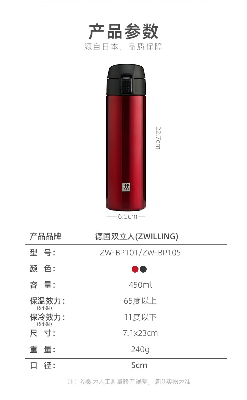 双立人真空弹跳杯450毫升
