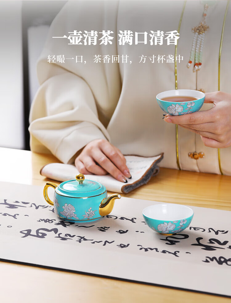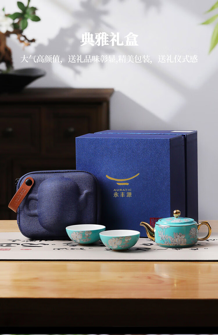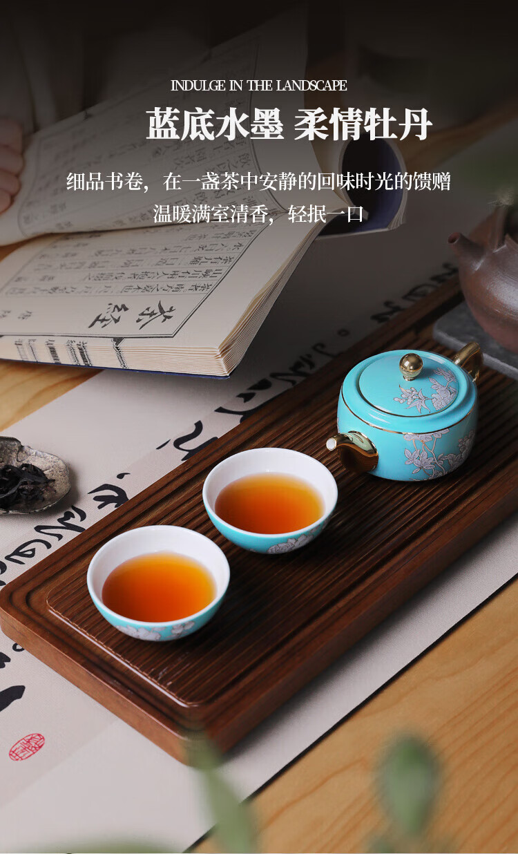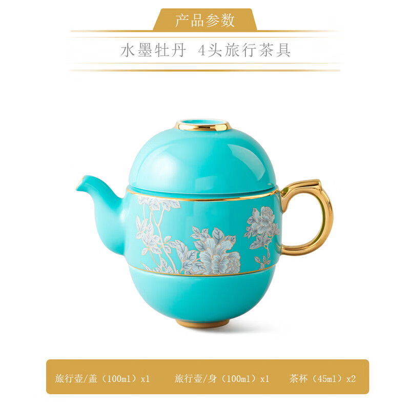 盛宴瓷·水墨牡丹4头旅行茶具(130m1