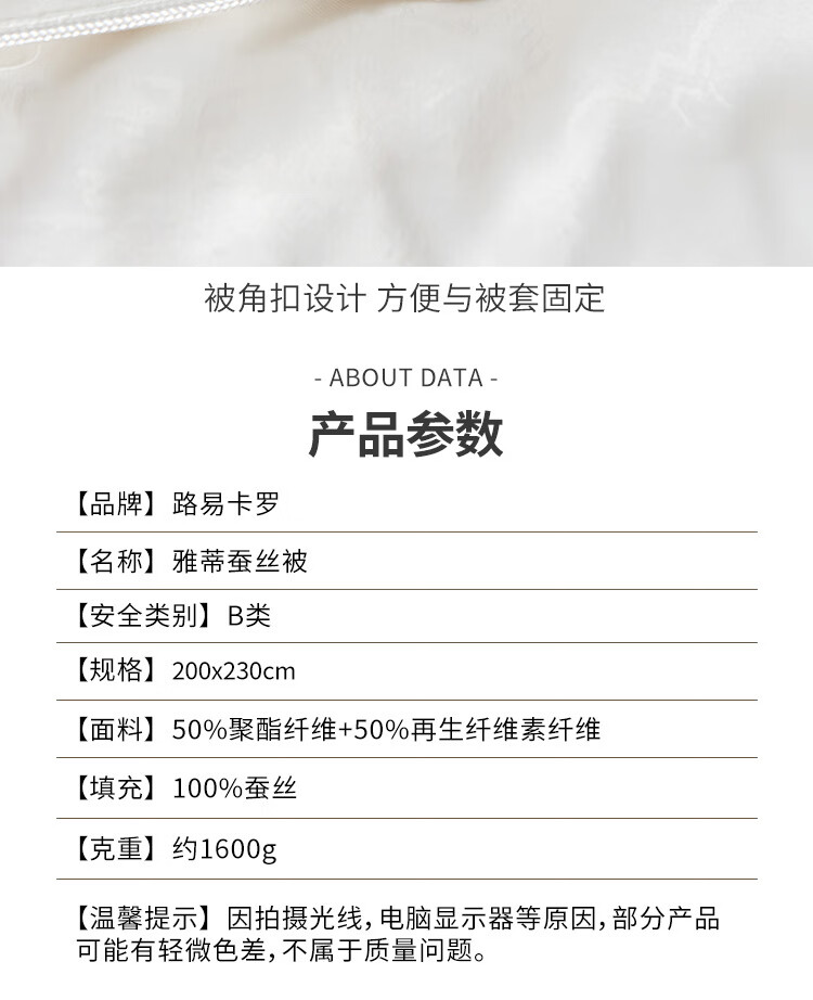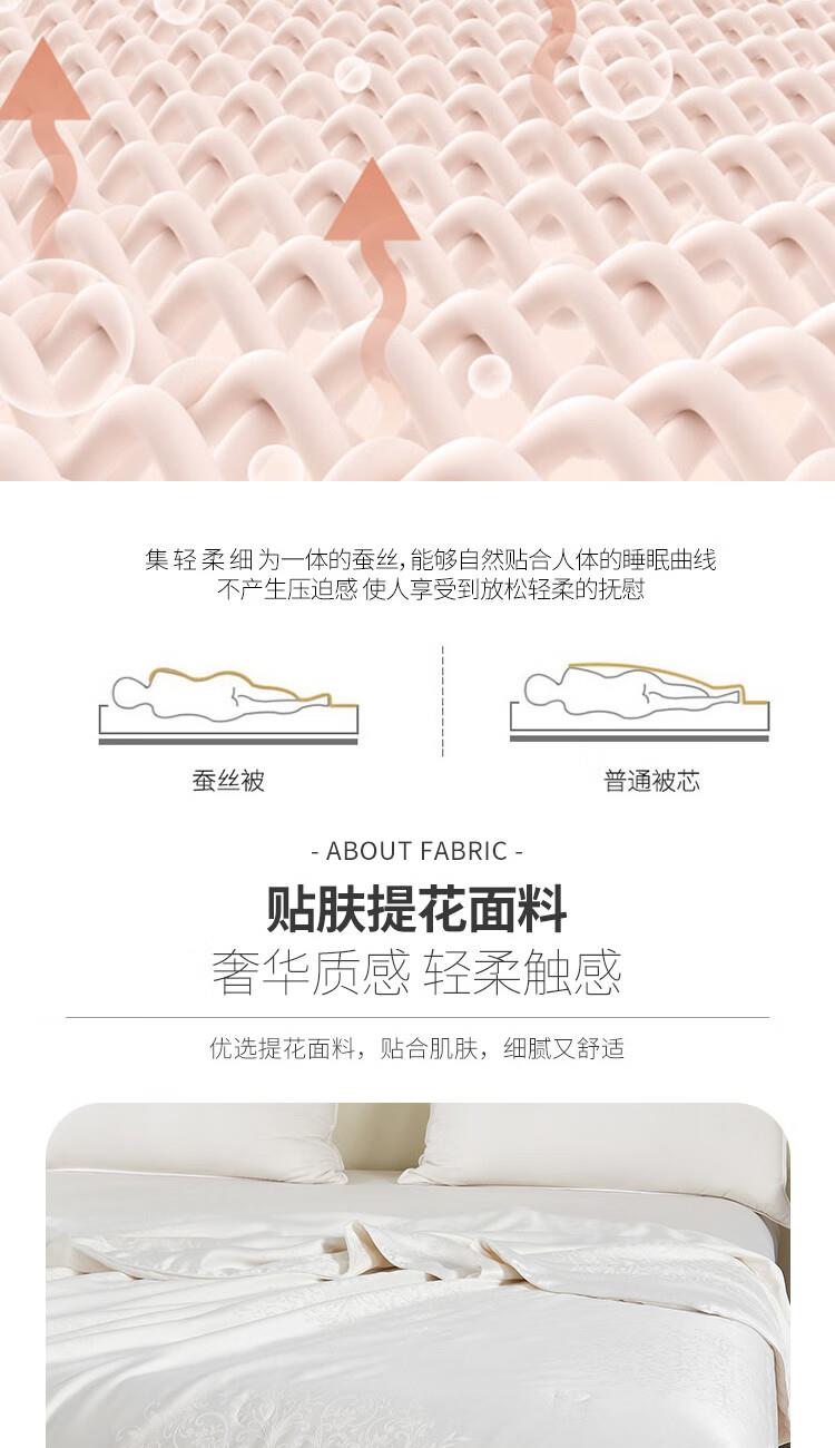 货 号:LK-8859 面 料:50%聚酯纤维 50%再生纤维素纤维 填 充:100 %蚕丝 规 格:200*230cm 克 重:1600g