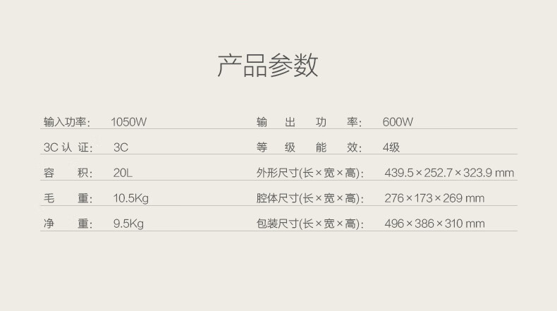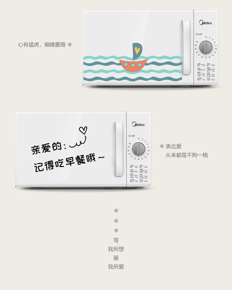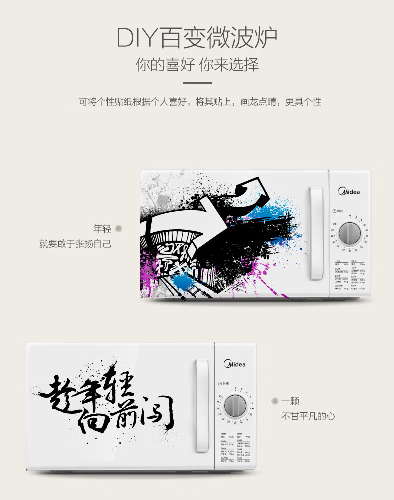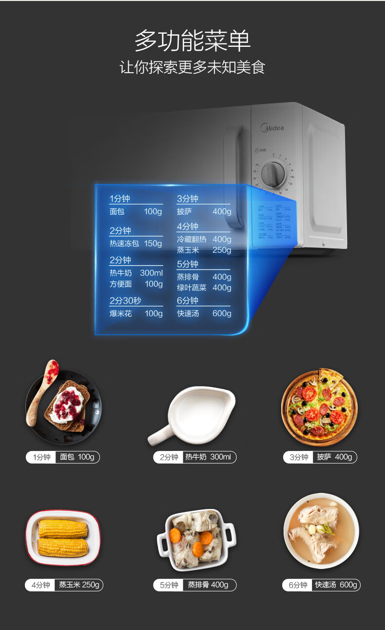 1、30分钟时间自由控制,旋转即可调节2、360度立体加热,受热均匀3、威特高效磁控管,效率更高4、多功能菜单,给您更多的选择5、易洁内胆,一抹即净6、DIY设计方案,个性化定制7、20L容量,适合家庭使用