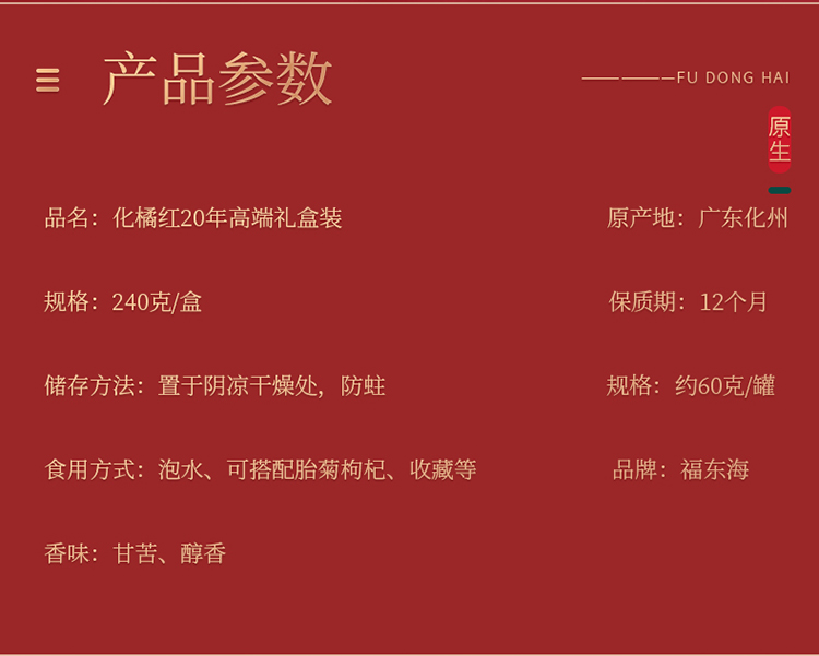 产地:广东化州 净含量:240克(4*60克) 产品毛重:450g 彩盒尺寸:29.1*27.6*6.5CM 装 箱数量:5盒 /箱