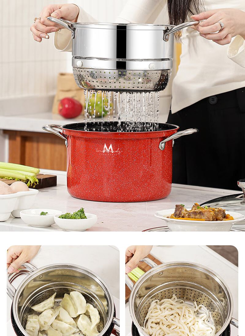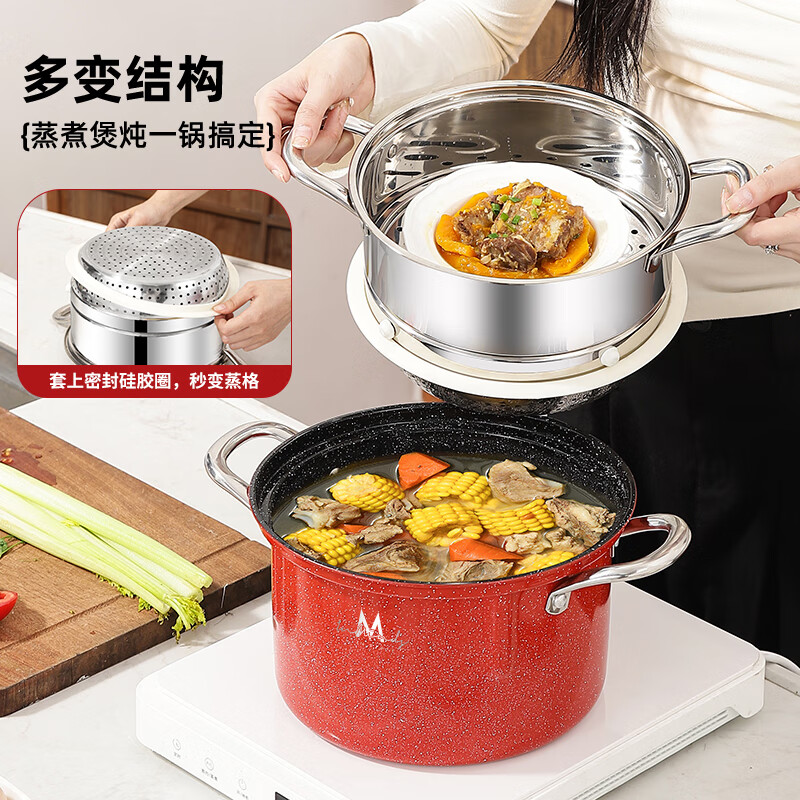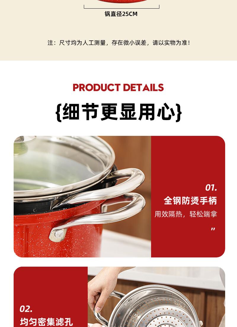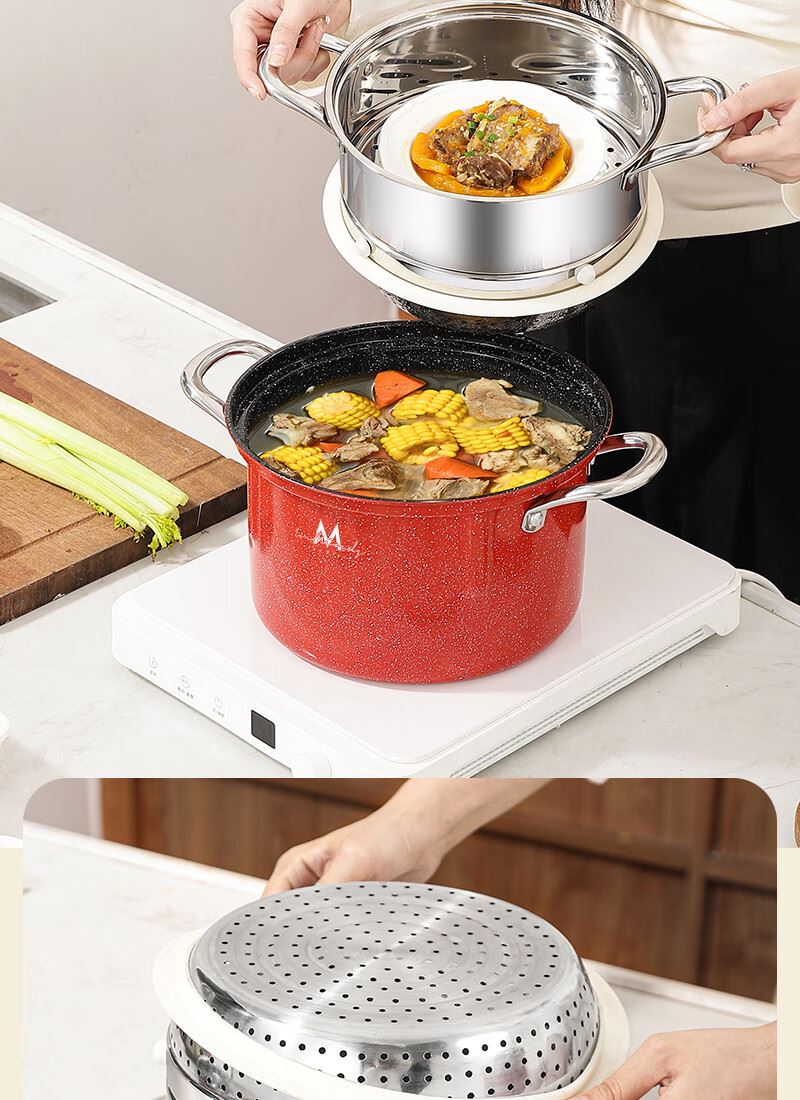 产品规格:24cm 表面涂层:陶瓷不粘 产品尺寸:锅直径25cm/锅高14.2cm/内胆高13.5cm