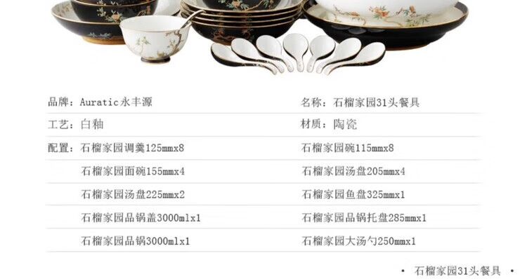 永丰源夫人瓷·石榴家园-31头餐具(8人位)