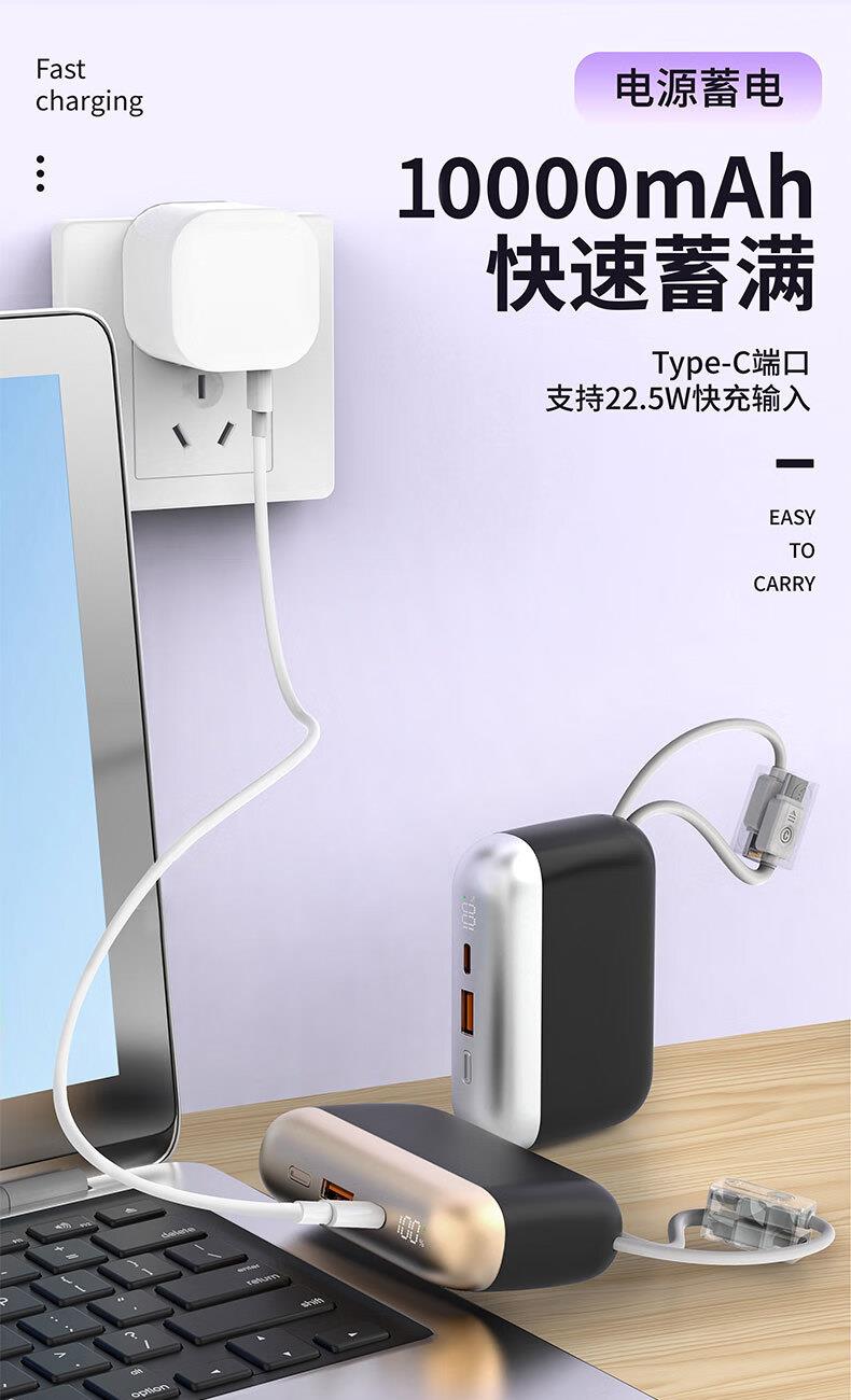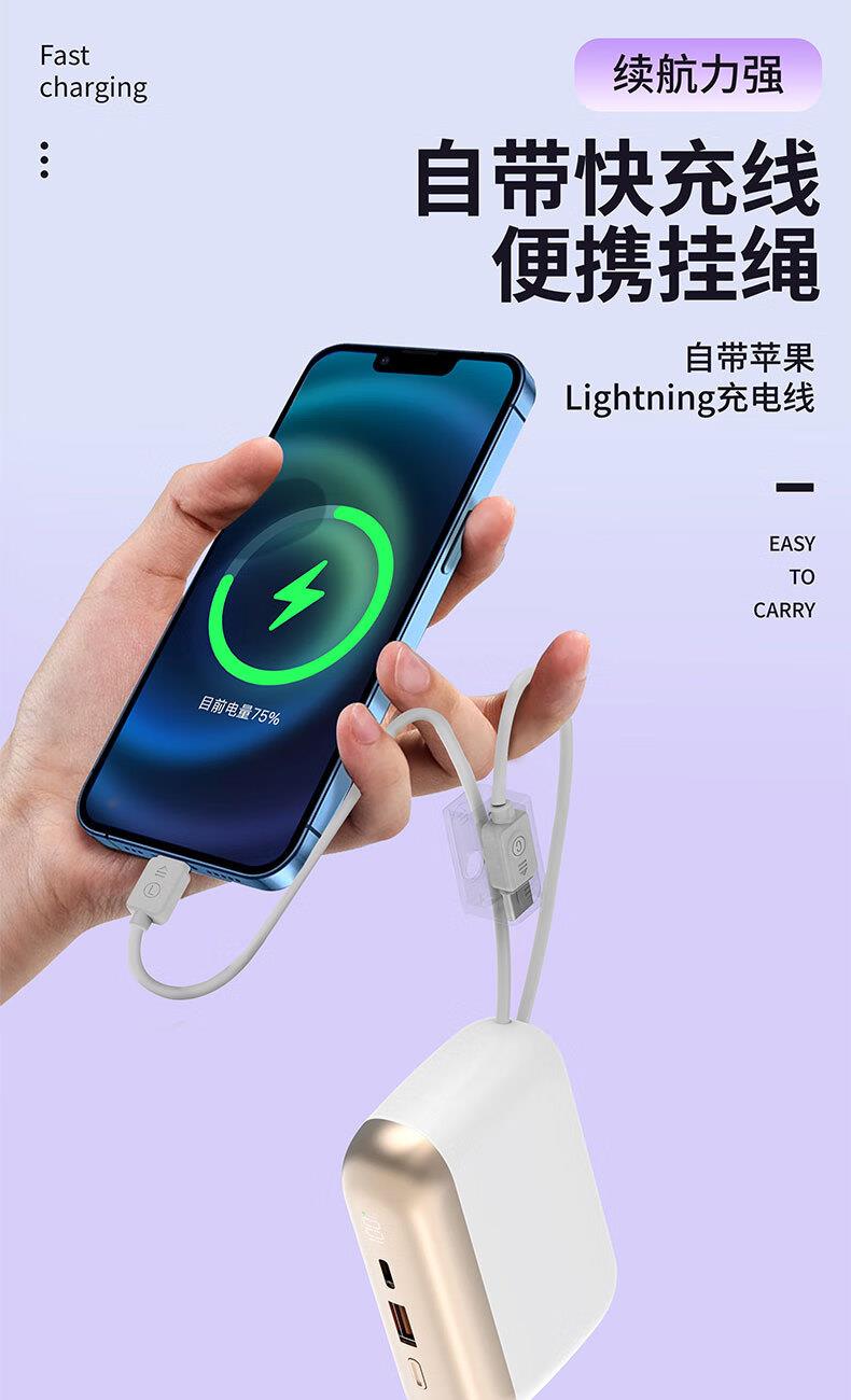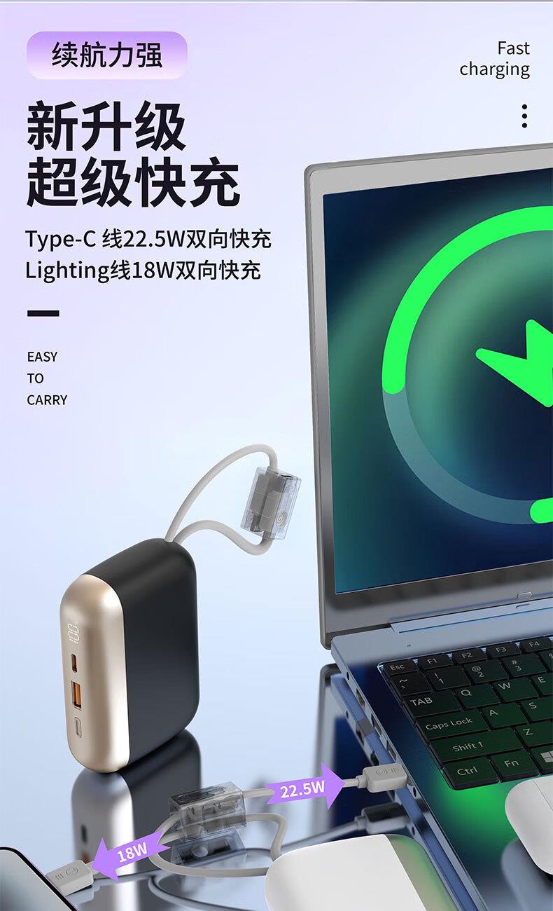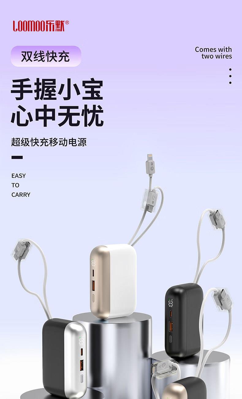 乐默自带两线超级快充移动电源