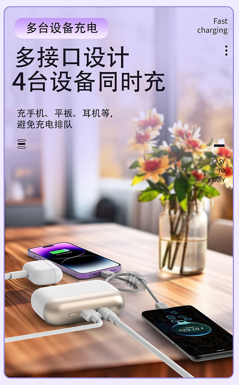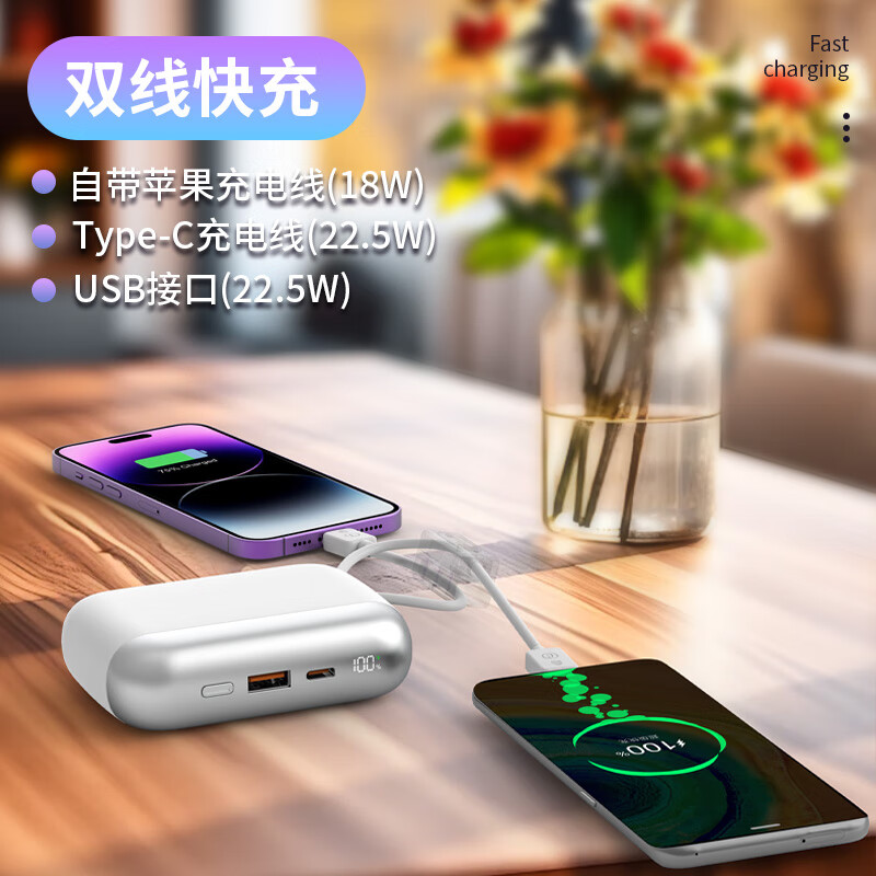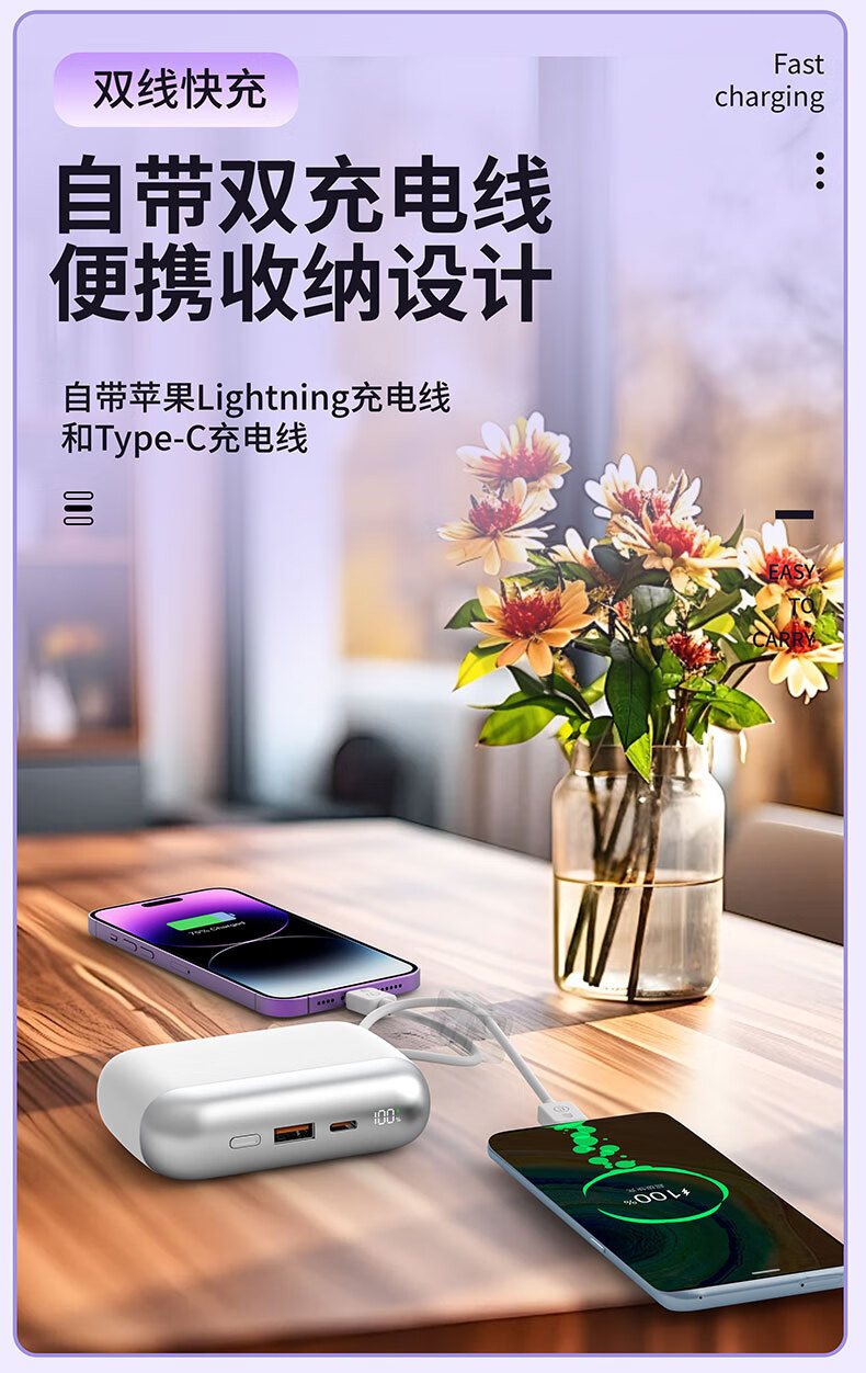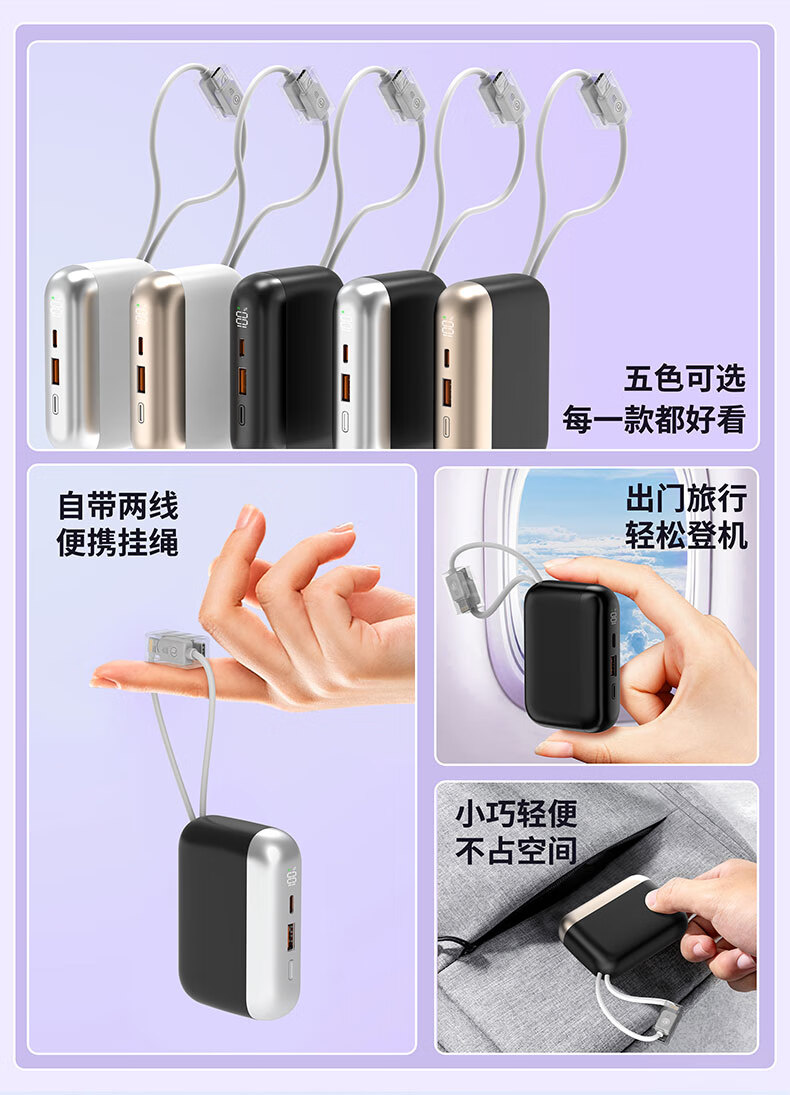乐默自带两线超级快充移动电源
