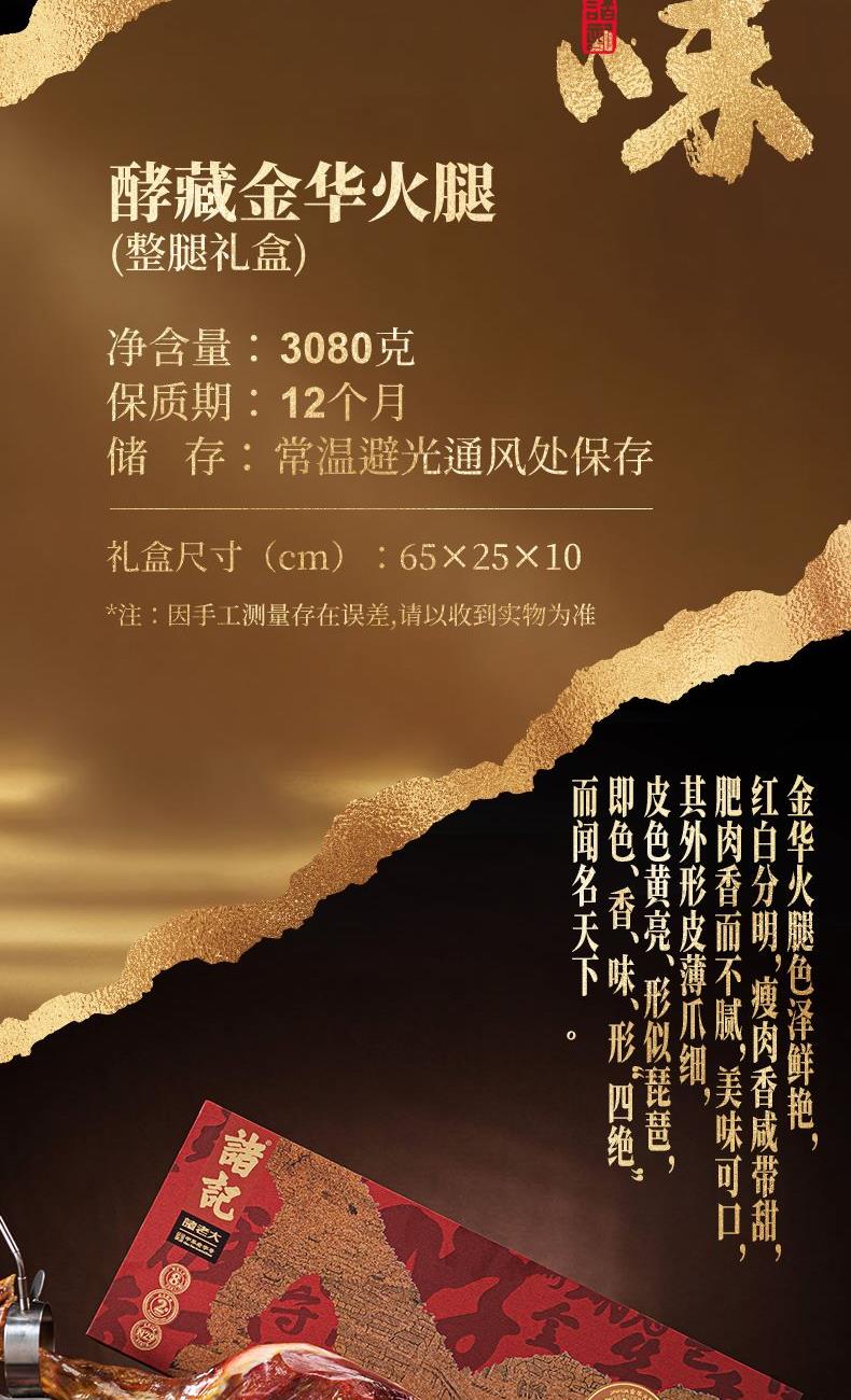 诸老大3.08千克酵藏金华火腿整腿礼盒