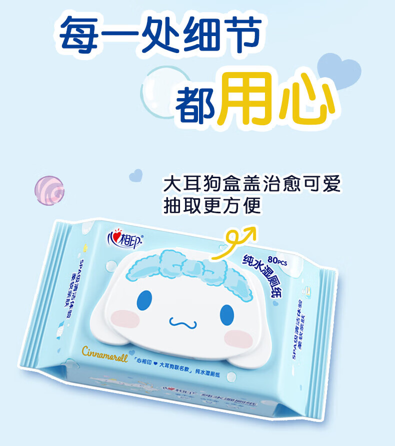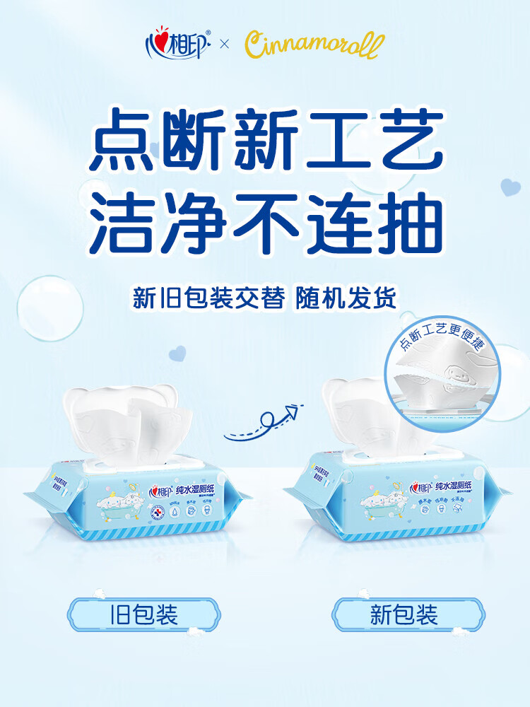 XCY080+P2心相印纯水湿厕纸80抽大包12包/箱