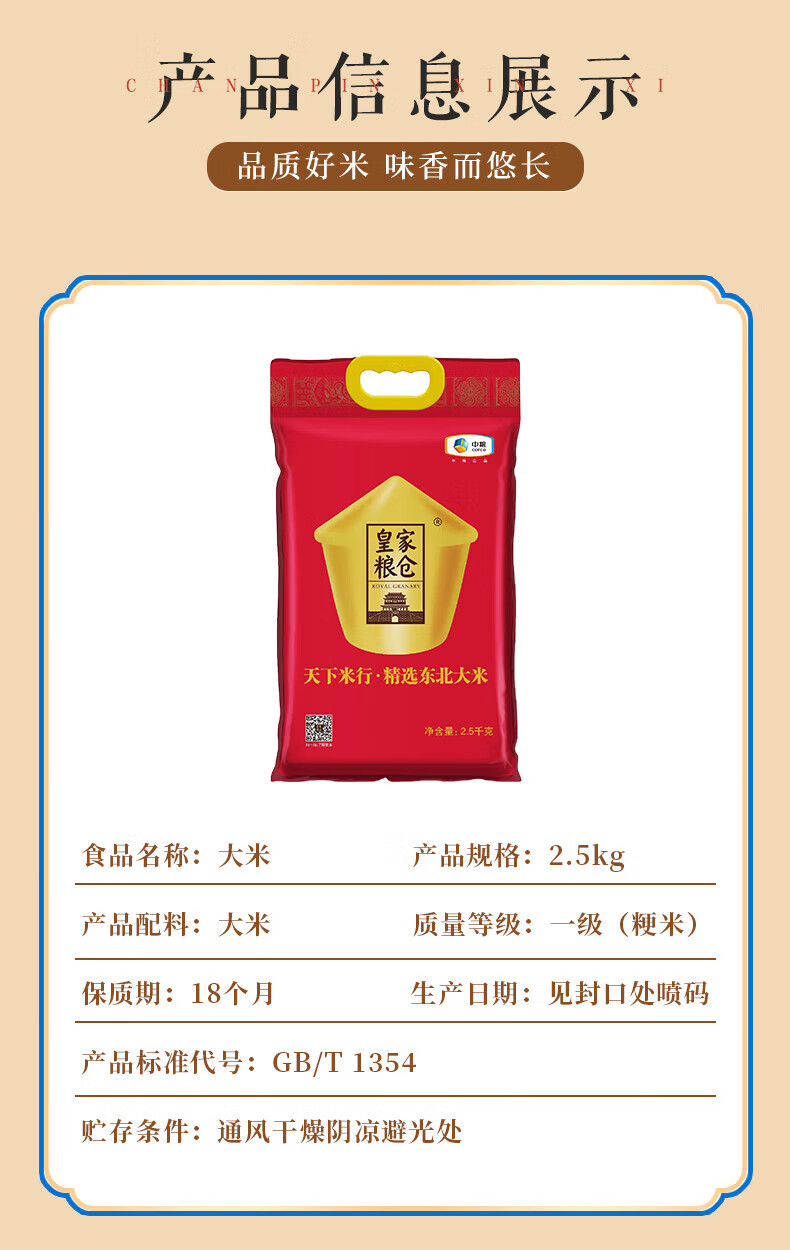 中粮皇家粮仓天下米行精选东北大米2.5kg