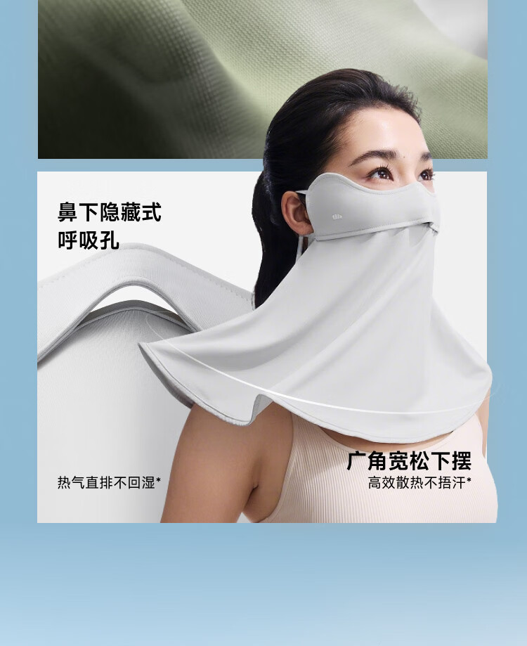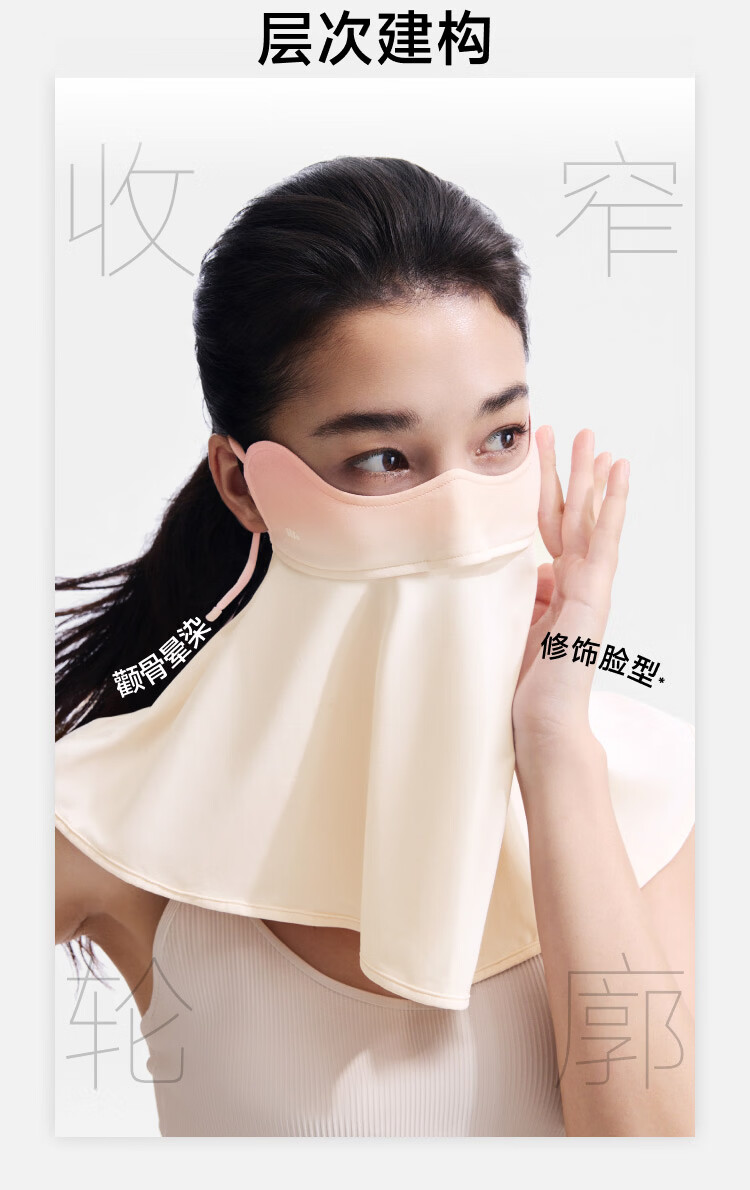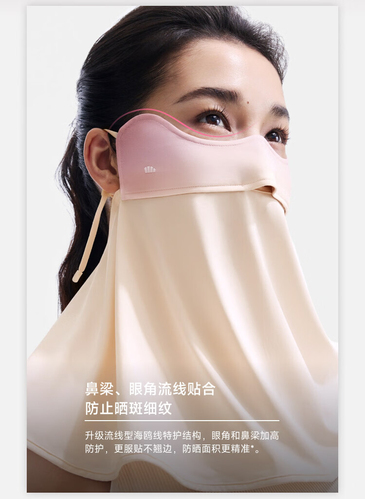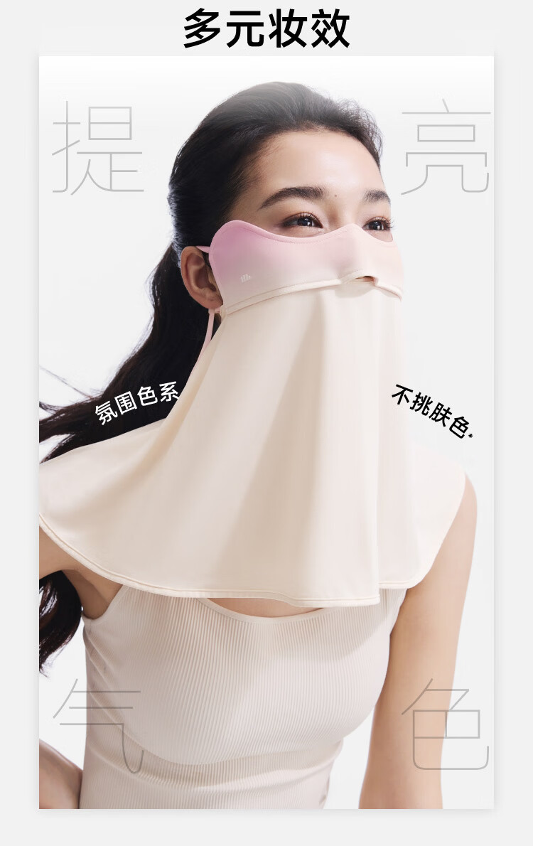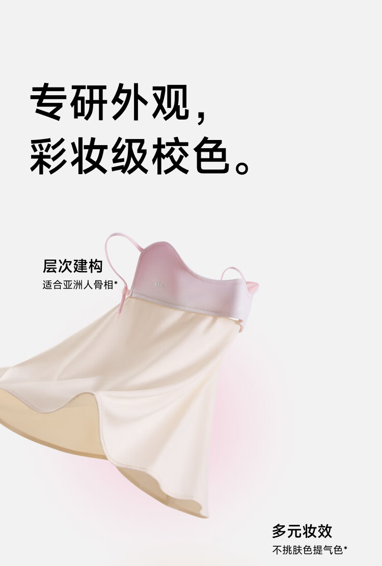 UPF50+原纱防晒、水洗不减防晒力 冰丝面料凉感升级、隐形防滑条佩戴更稳固时尚腮红素颜提气色