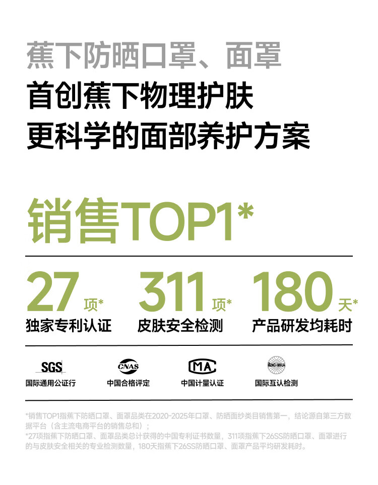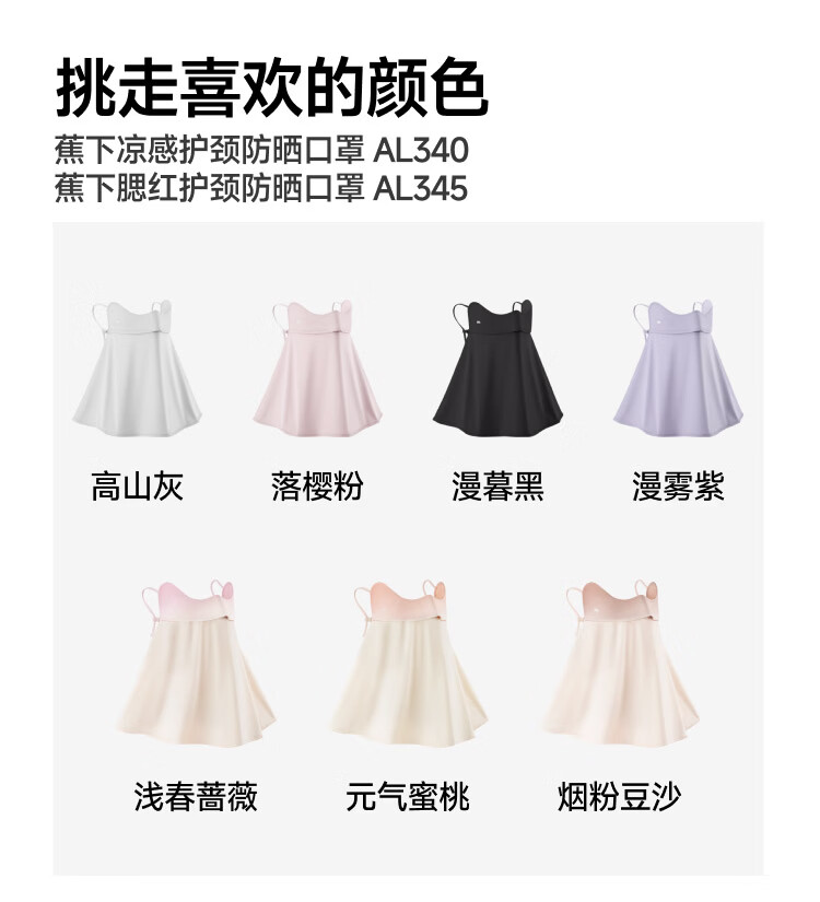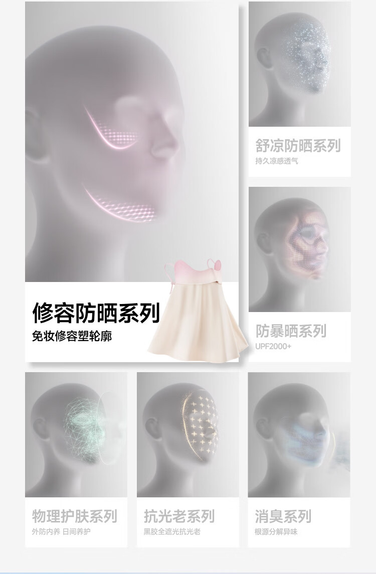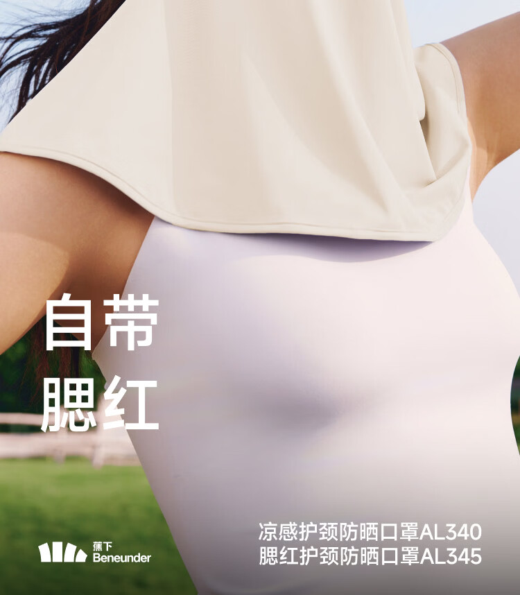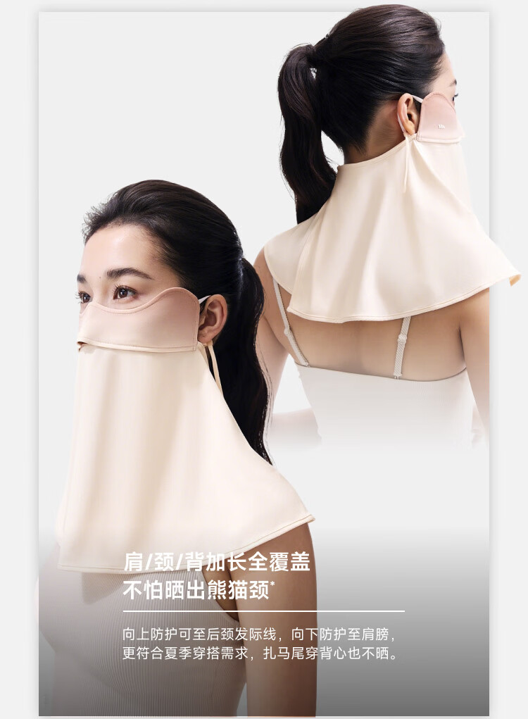 UPF50+原纱防晒、水洗不减防晒力 冰丝面料凉感升级、隐形防滑条佩戴更稳固时尚腮红素颜提气色