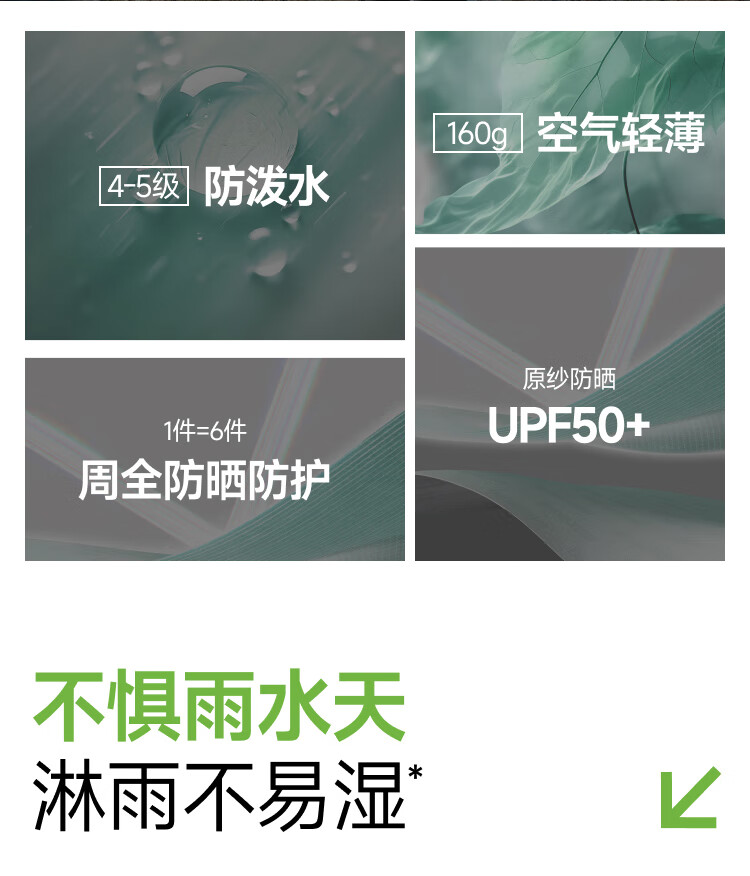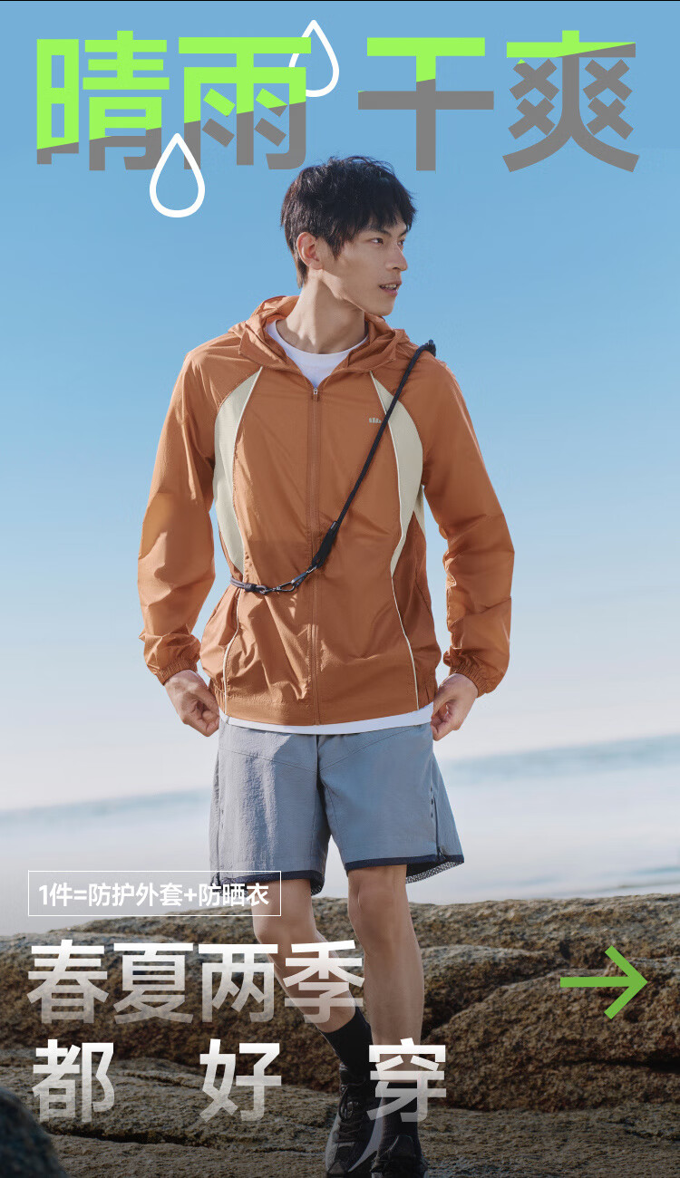 UPF50+、晴雨干爽防晒衣、一件抗住户外雨水日晒细雨突来滴水难漏不易湿、空气轻薄久穿无负担包容身型挺阔硬朗