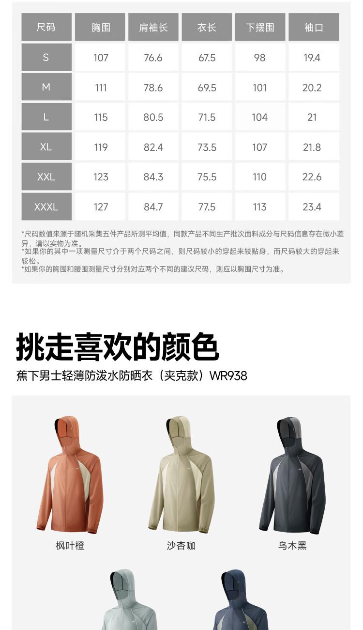 蕉下男士轻薄防泼水防晒衣(夹克款)WR938