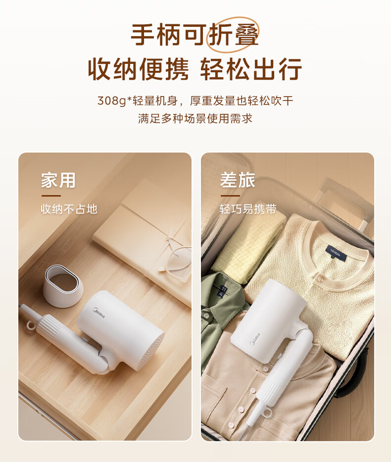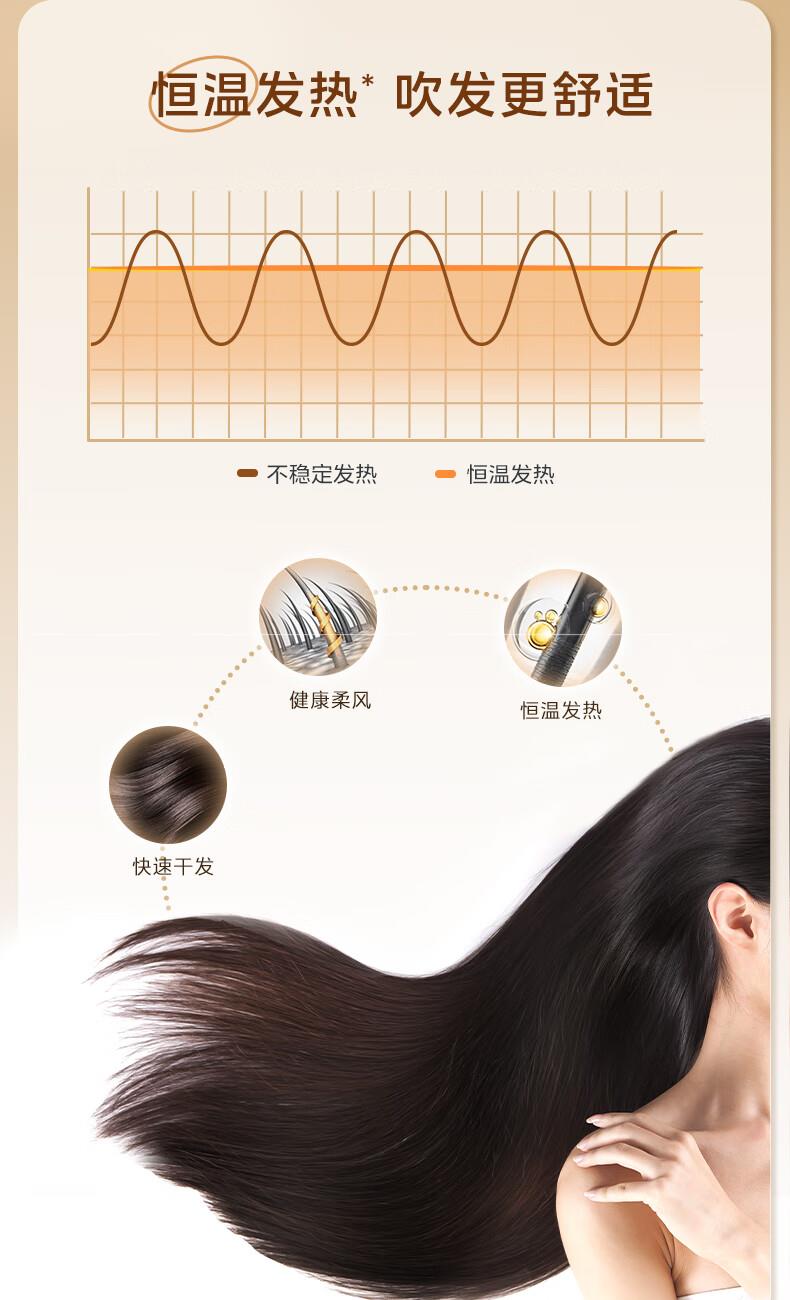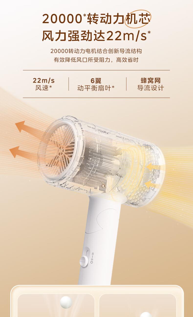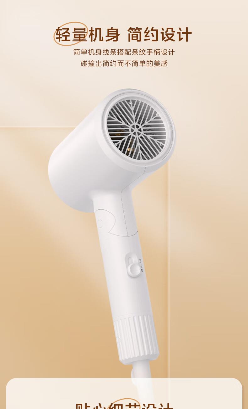 额定功率 : 1800w 额定输入 : 220V~50Hz 包装内含 : 主机*1、风嘴*1、说明书*1 ① 定制1800w大功率,3分钟快速干发; ② 温和大风力,速干不伤发 ③释放高浓度2万级水润负离子,双重温控智能恒温 ④ 两档风速+独立冷热风;进风网人性化设计,防吸发