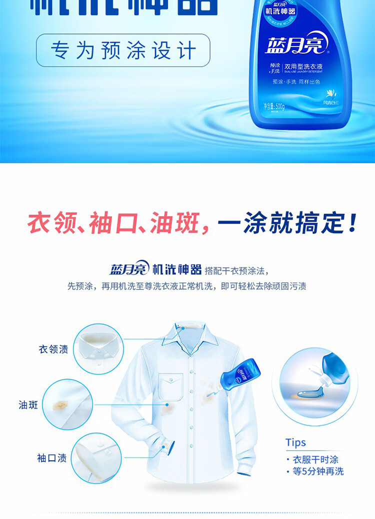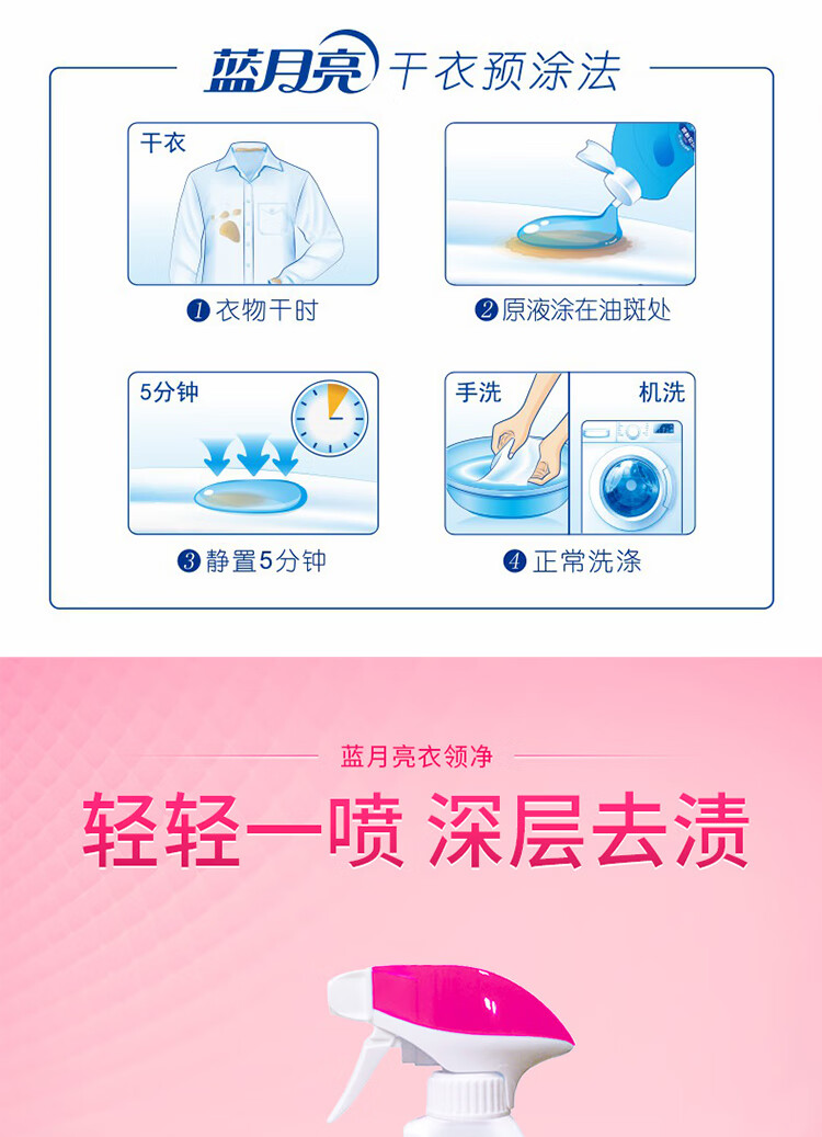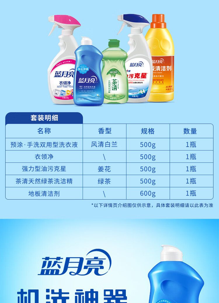 预涂手洗双用型洗衣液翻盖装500g*1 喷雾型衣领净500g*1 强力型油污克星500g*1 茶清洗洁精500g*1 除 菌地板清洁剂600g*1