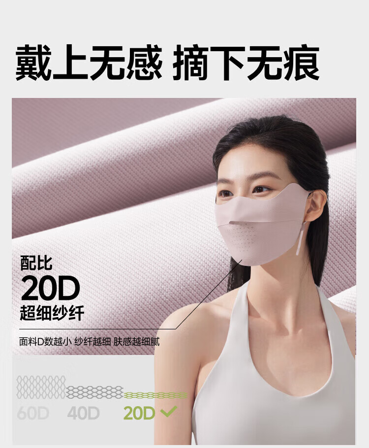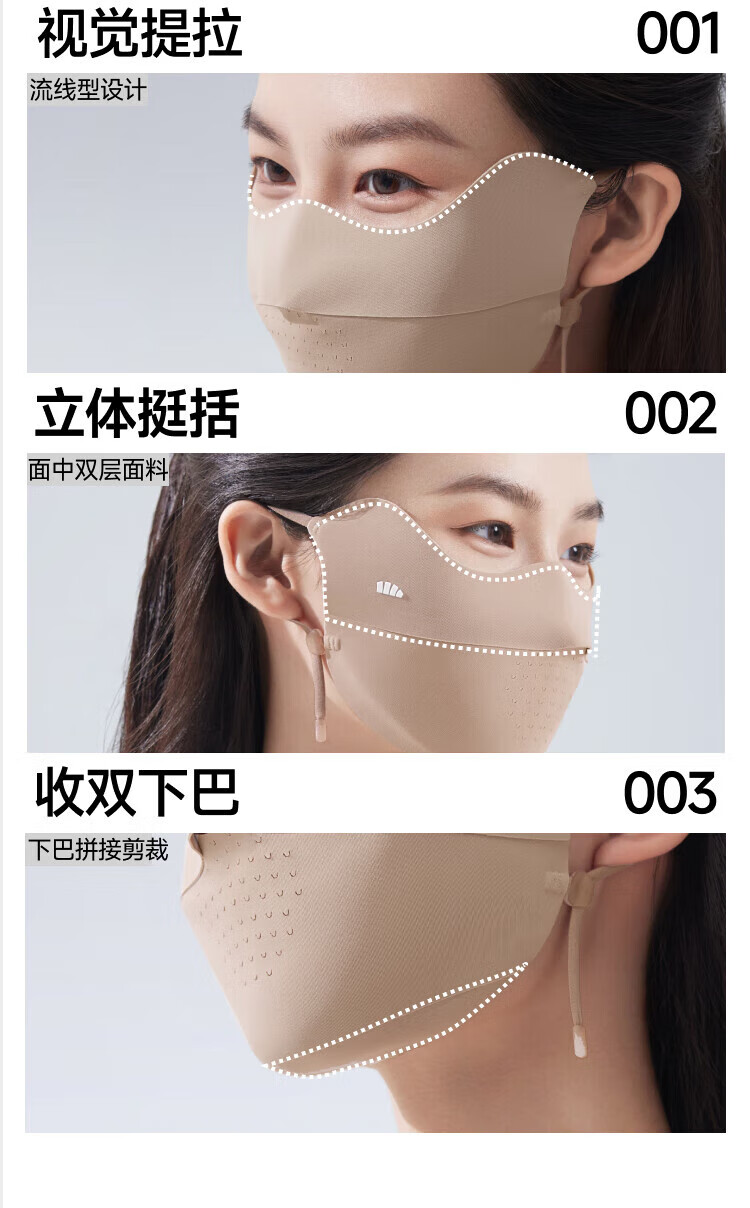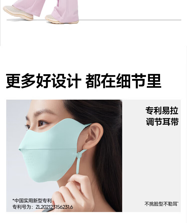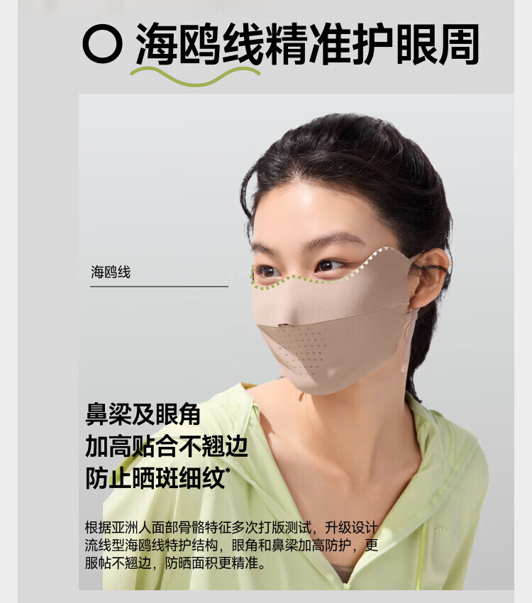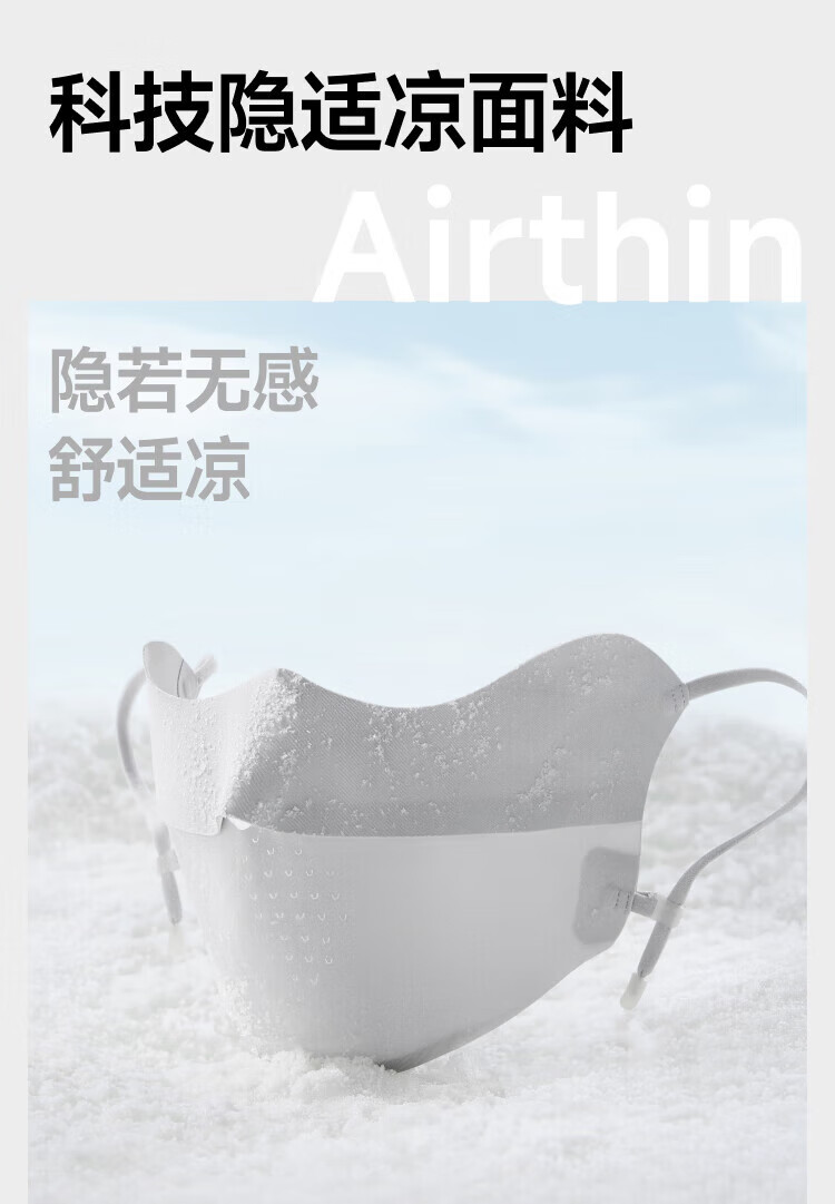 三重立体设计、服帖修饰脸型 1.66倍国标凉感镇 静肌肤、持久透气 透氧云朵纱突破传统冰丝防晒、无惧久晒闷热