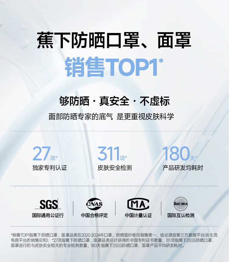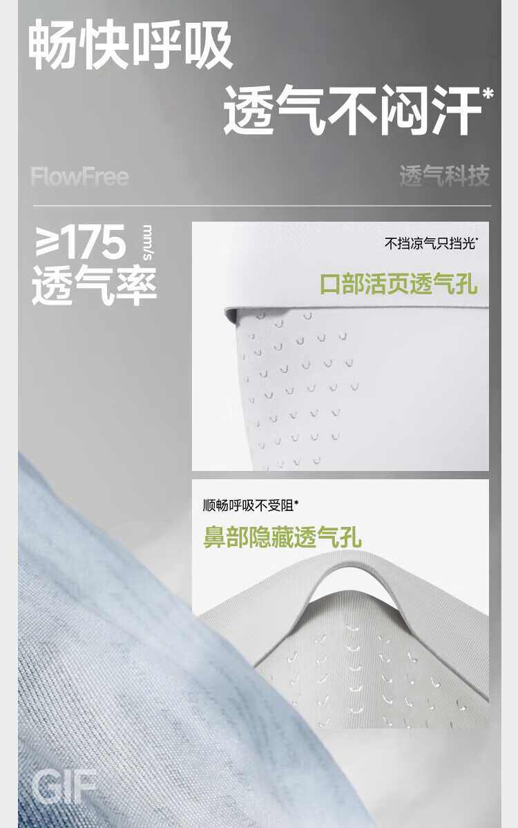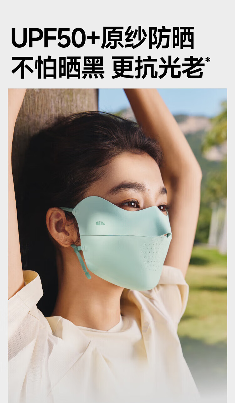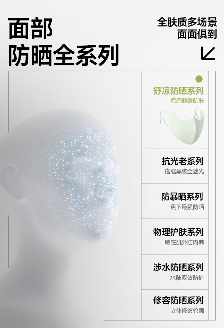 三重立体设计、服帖修饰脸型 1.66倍国标凉感镇 静肌肤、持久透气 透氧云朵纱突破传统冰丝防晒、无惧久晒闷热
