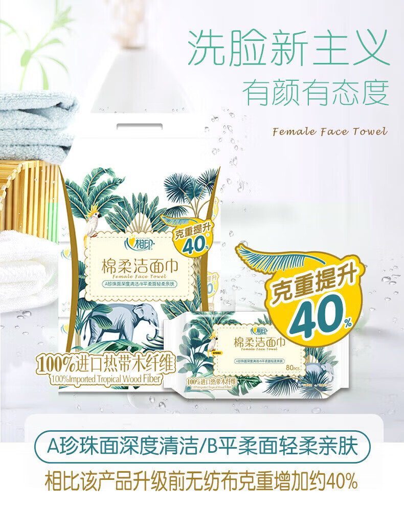 XCD080心相印棉柔系列80片装洗脸巾单包装30包/箱