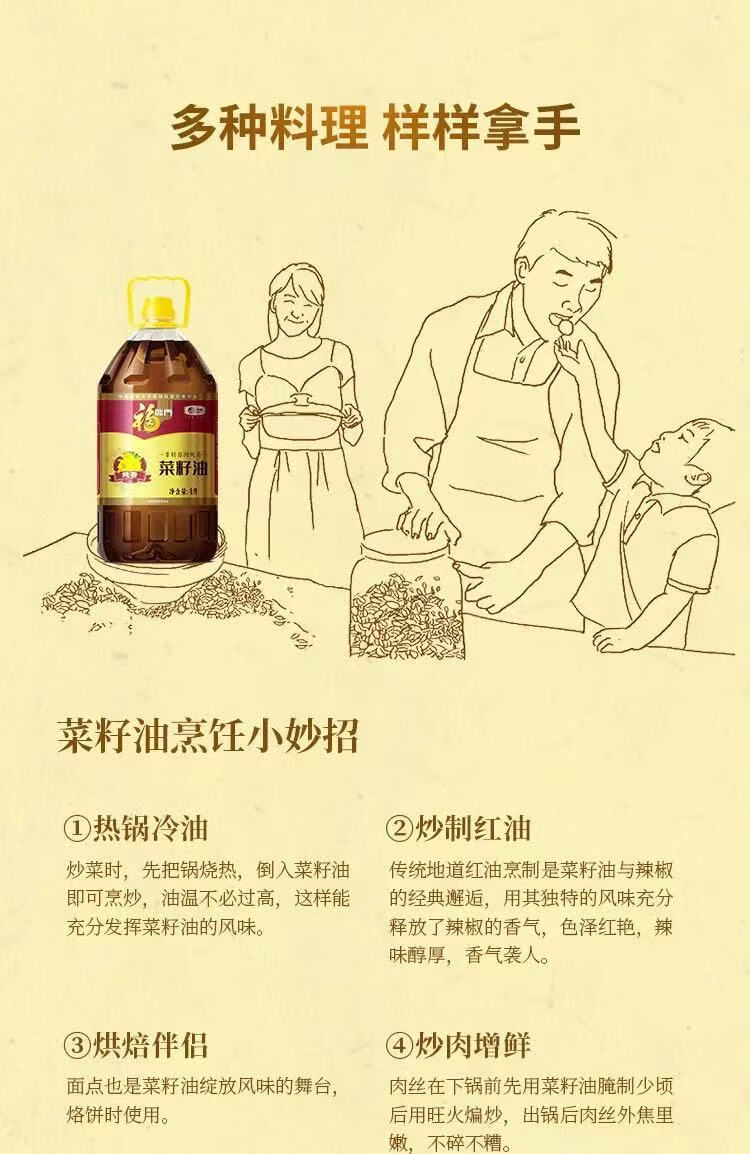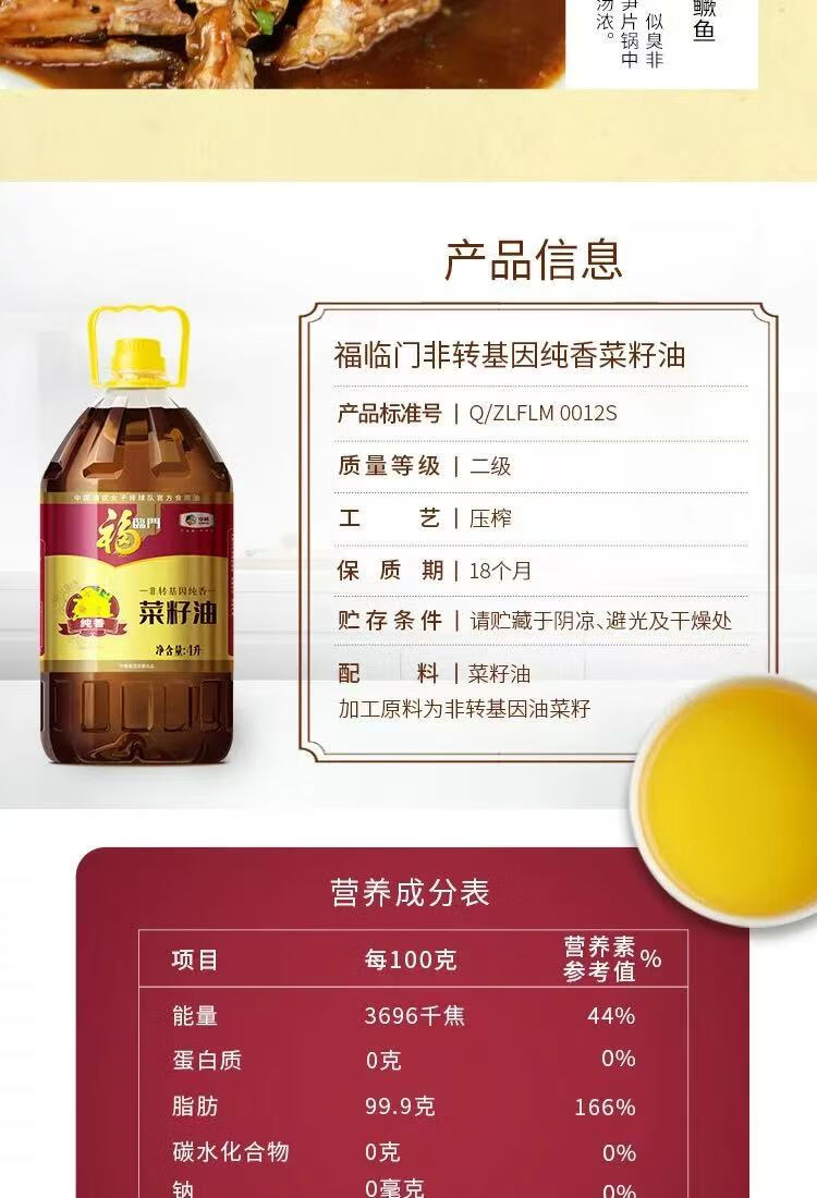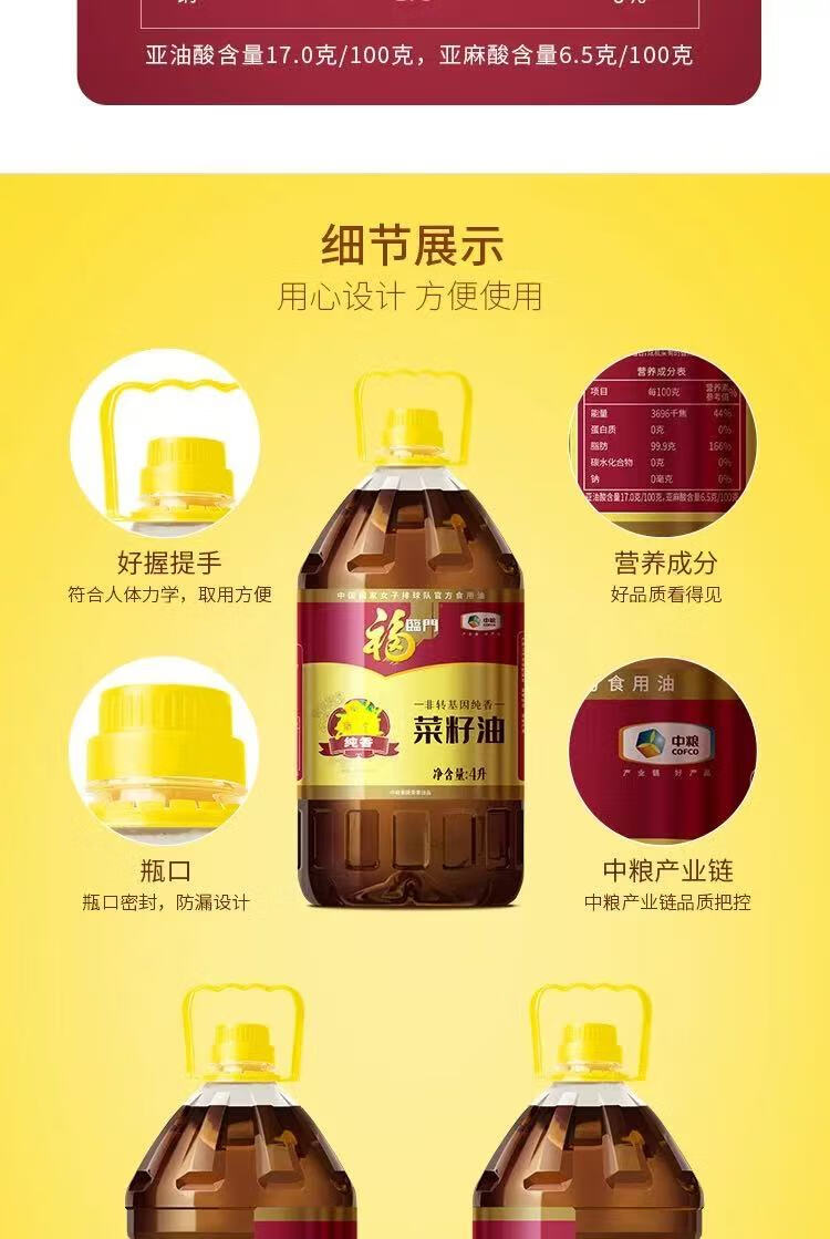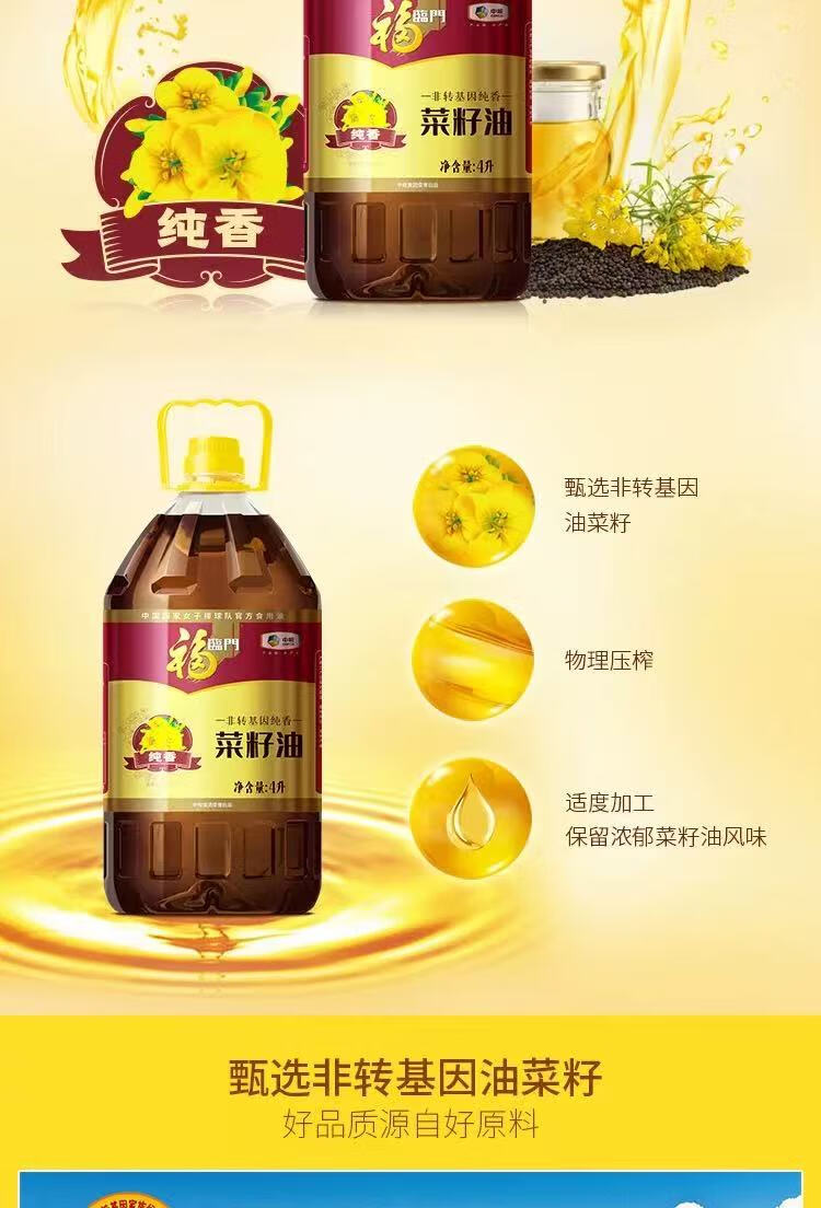 中粮福临门纯香菜籽油4L